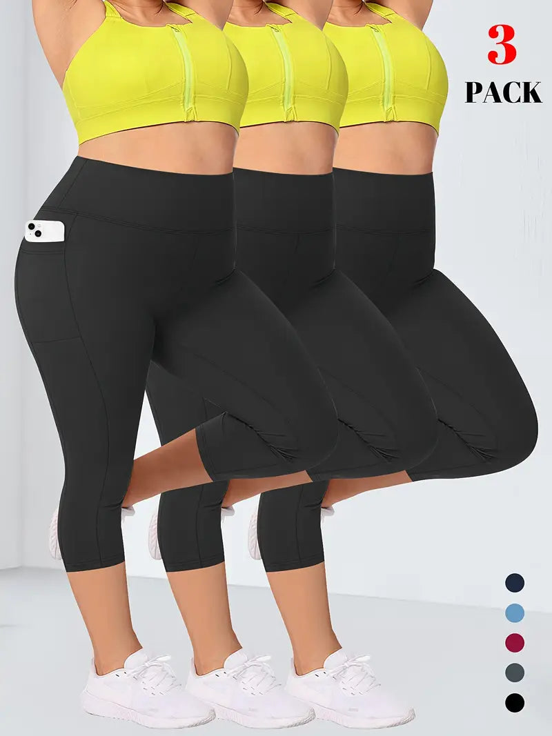 Plus Size Women's High-Waisted Tummy Control Capri Leggings 3-Pack