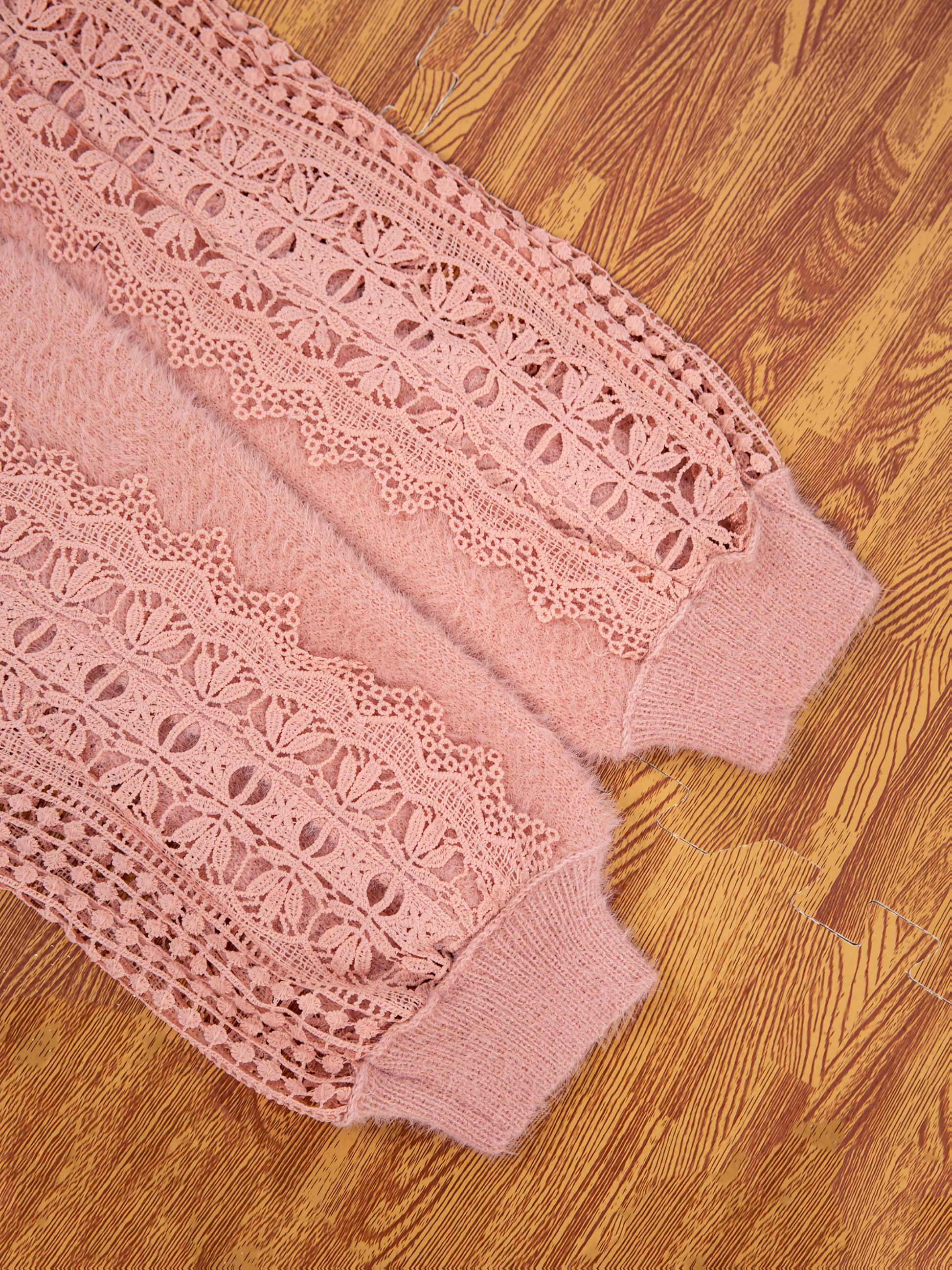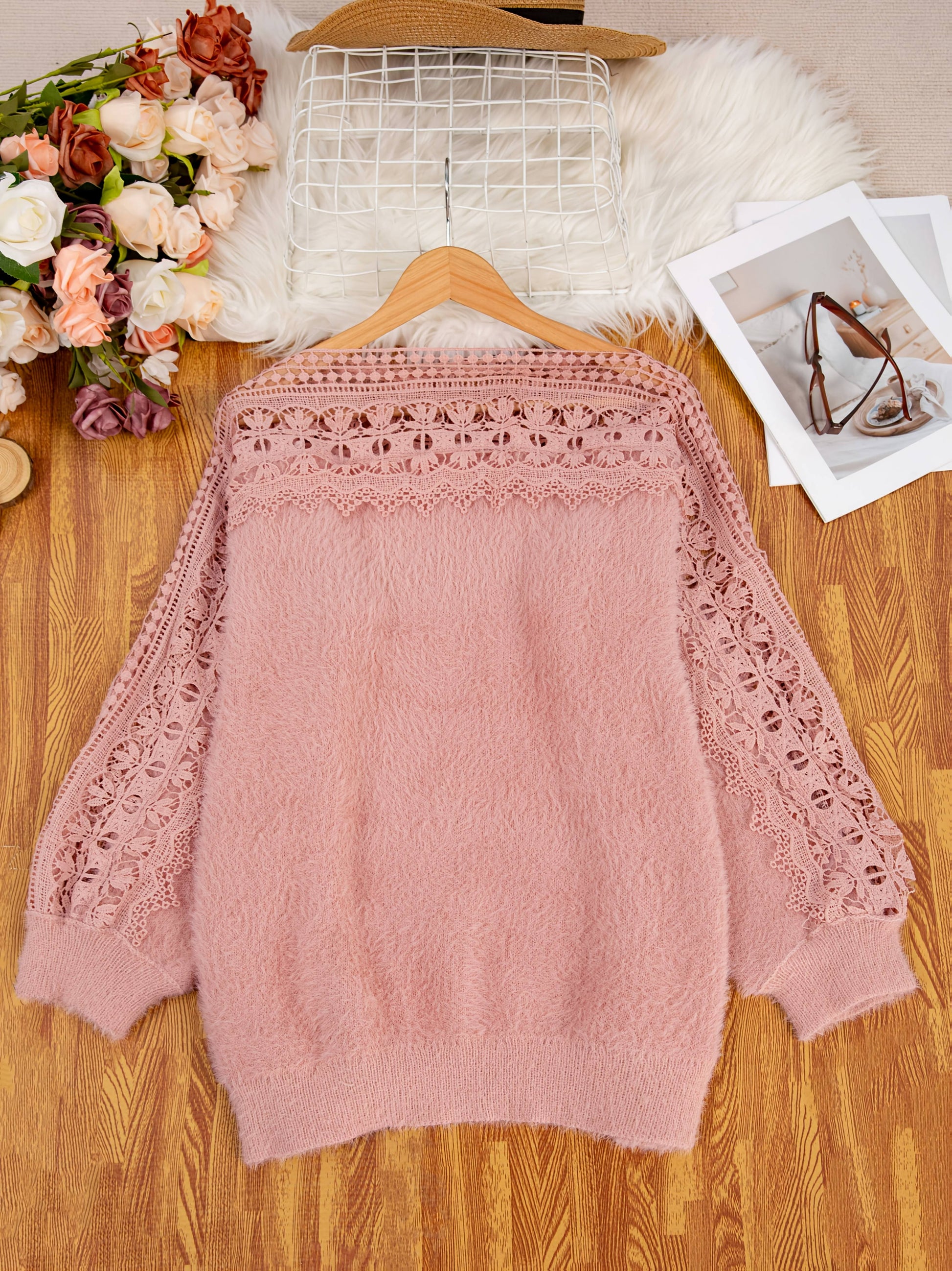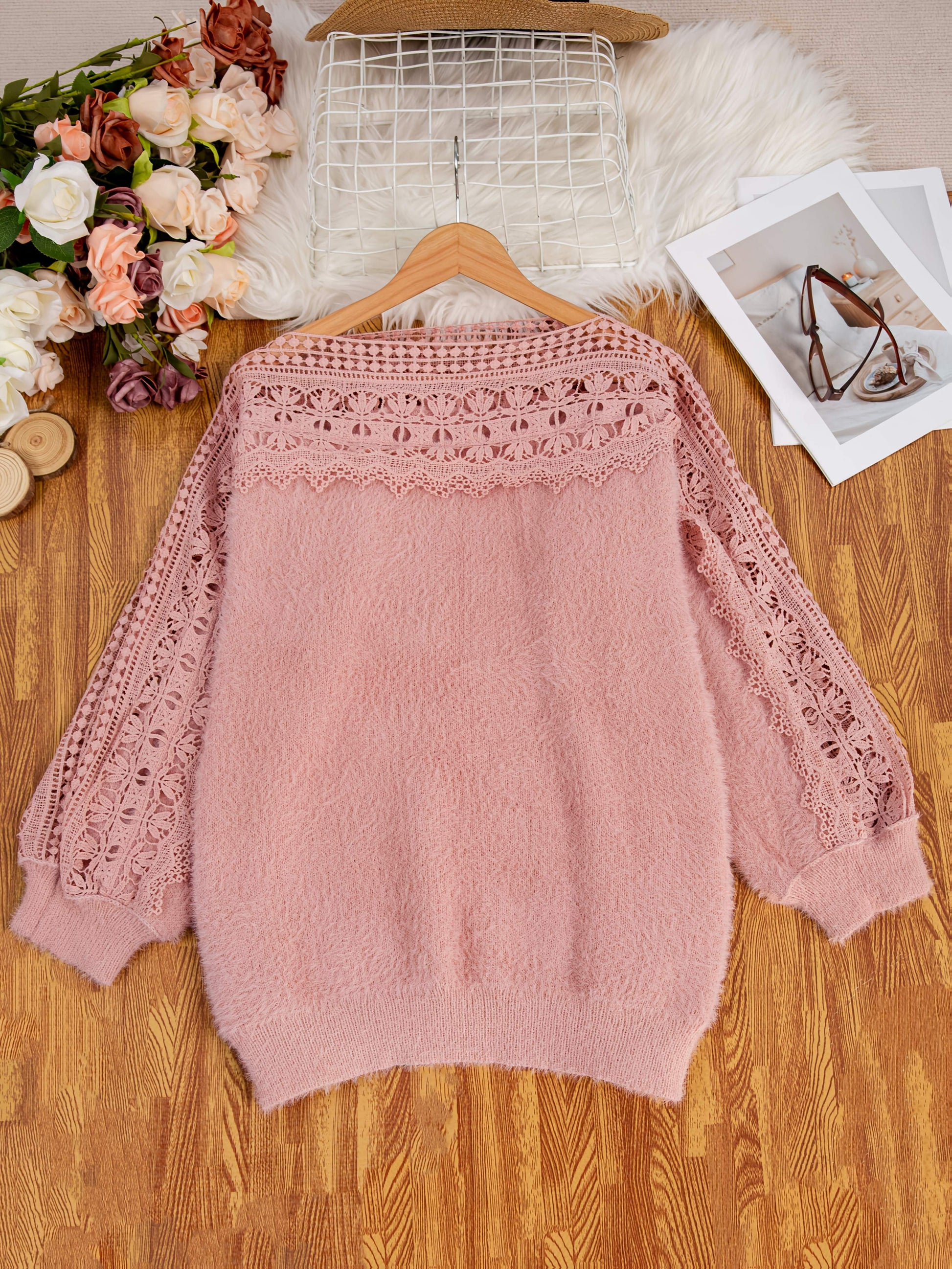 Plus Size Women's Lace Trim Sweater Long Sleeve Pullover Spring Fall Casual