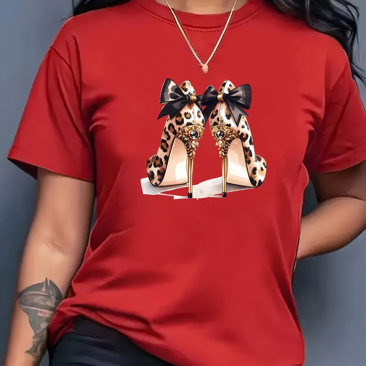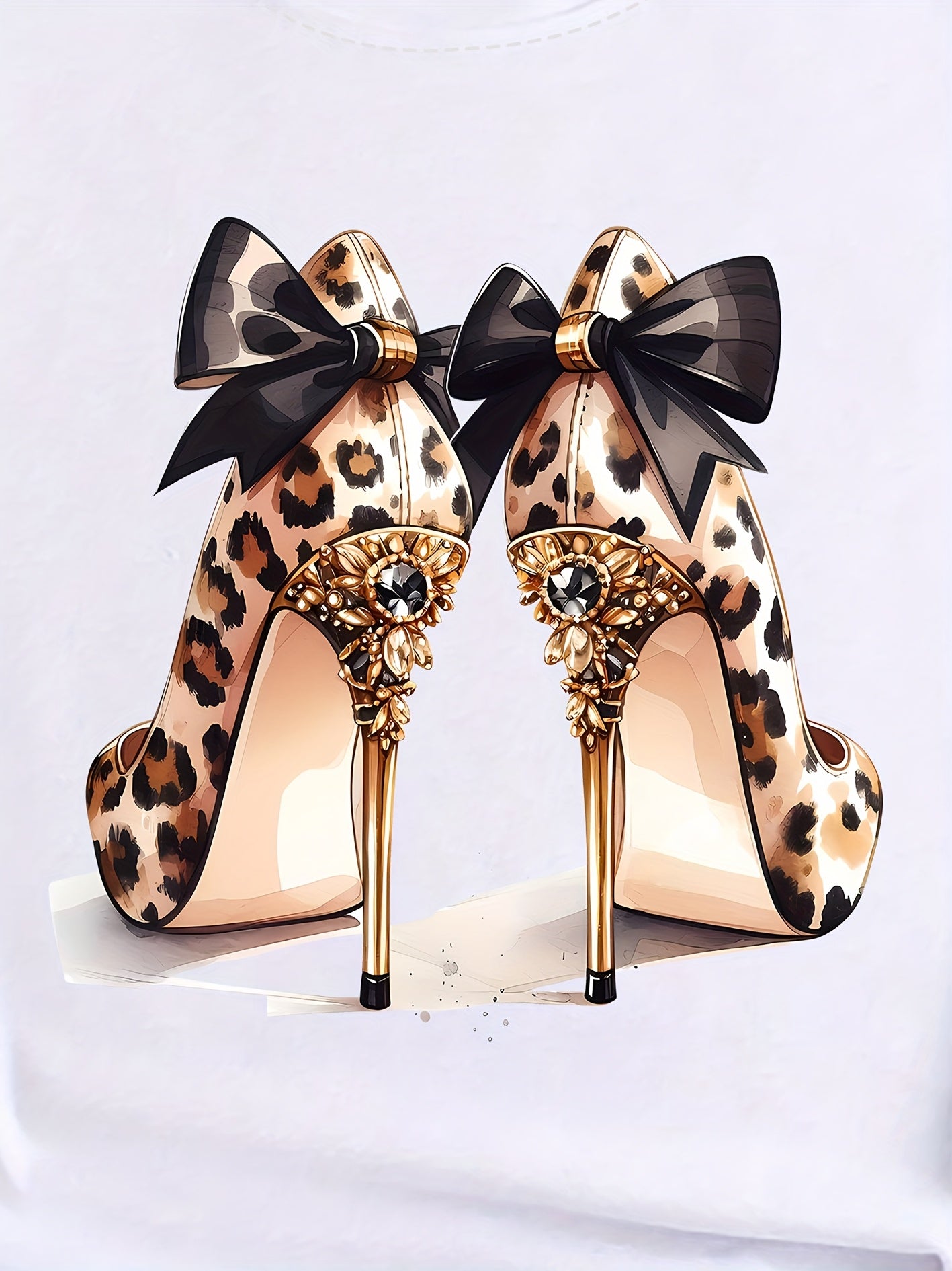 Plus Size Women's Leopard Print Short Sleeve T-Shirt White Casual Summer Wear
