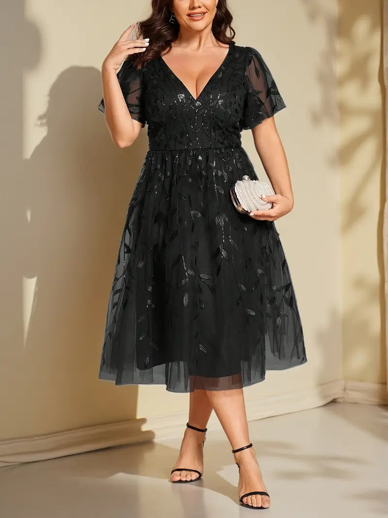 Plus Size Women's Mesh Cocktail Dress for Evening Parties and Formal Events