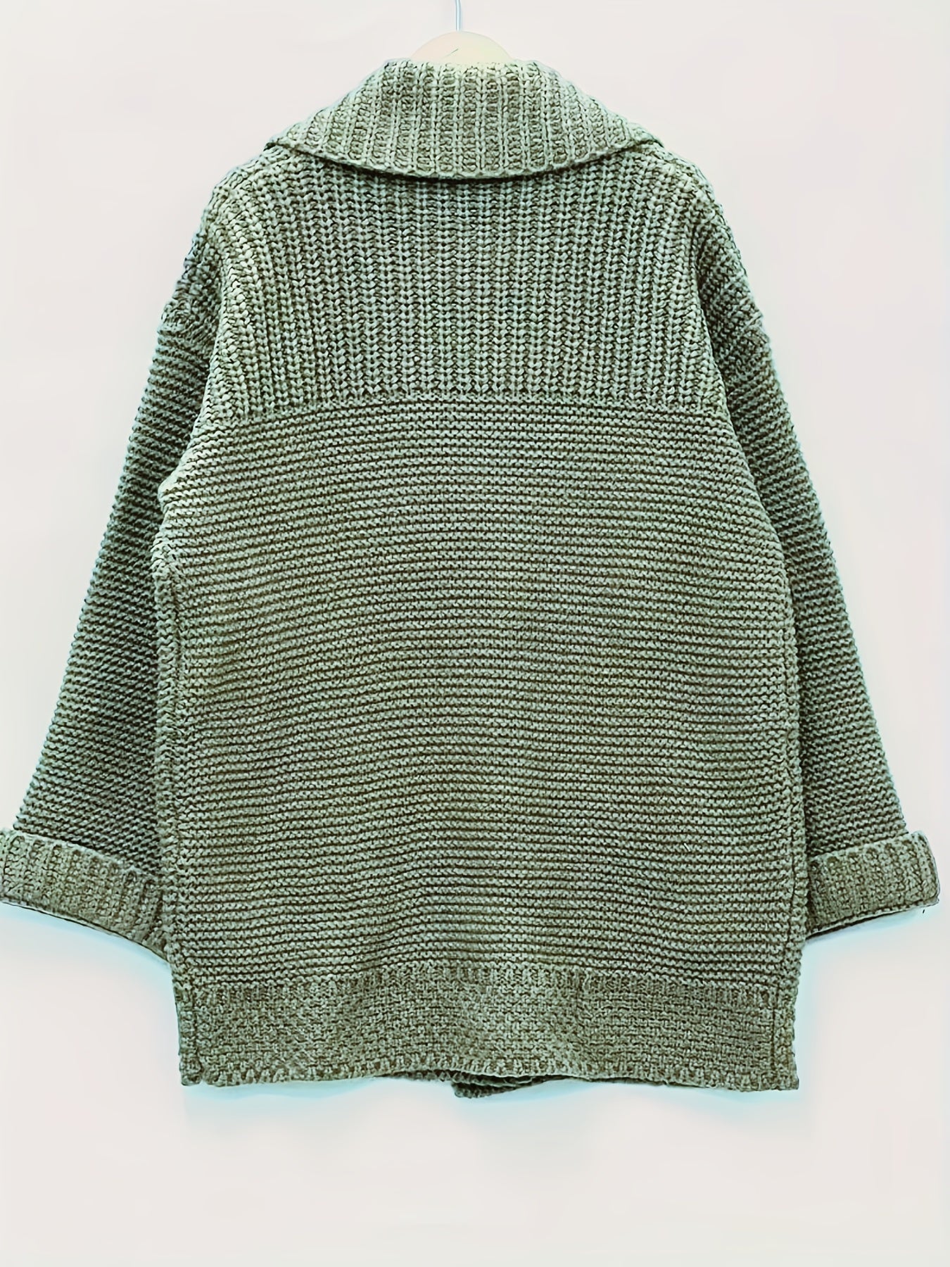 Plus Size Women's Red Long Sleeve Cardigan Cozy Winter Sweater with Pockets
