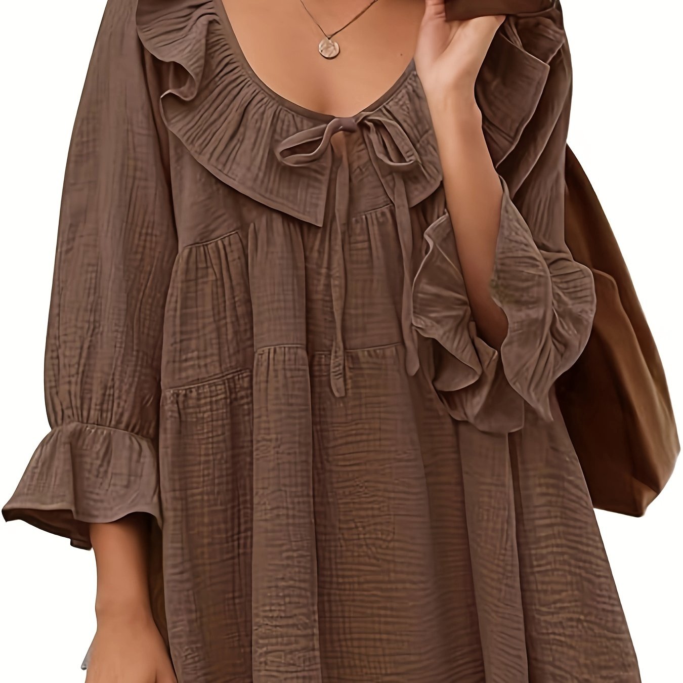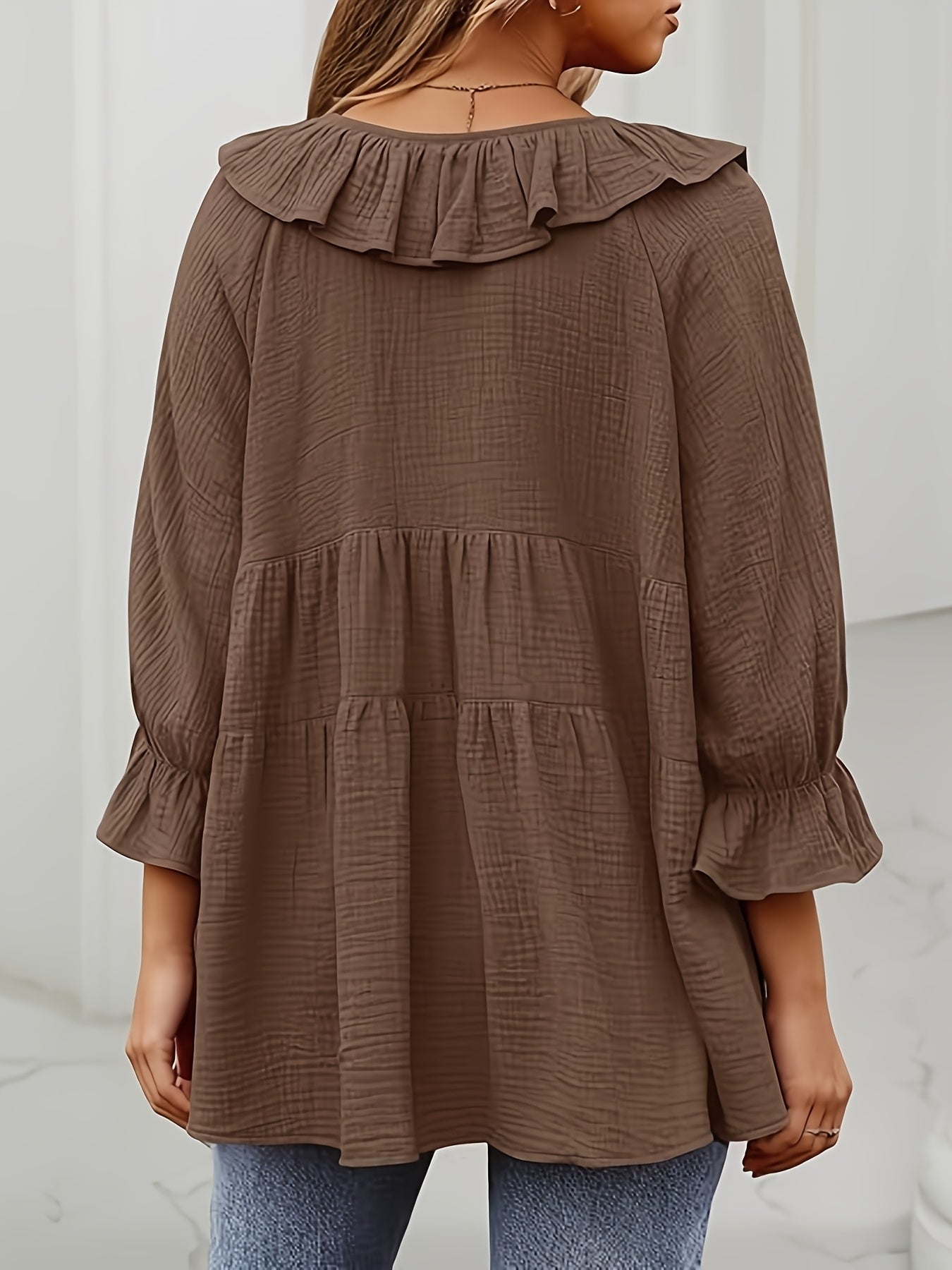 Plus Size Women's Ruffled Viscose Blouse with Ruffled Neck and Drawstring Waist