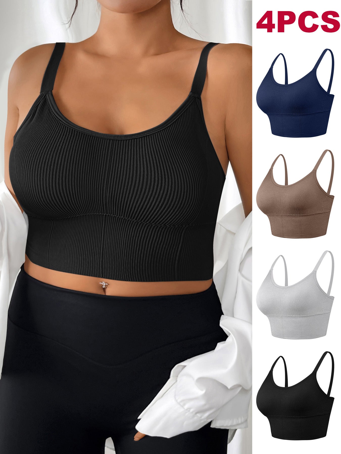 Plus Size Women's Sports Bras High-Elastic Ribbed Backless Yoga Running Workout
