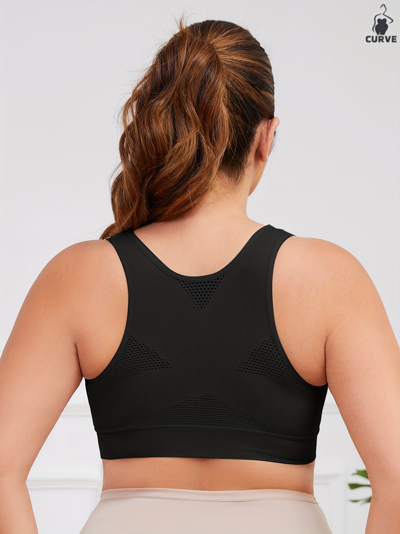 Plus Size Women's Sports Wireless Bra with Removable Pads and Adjustable Straps