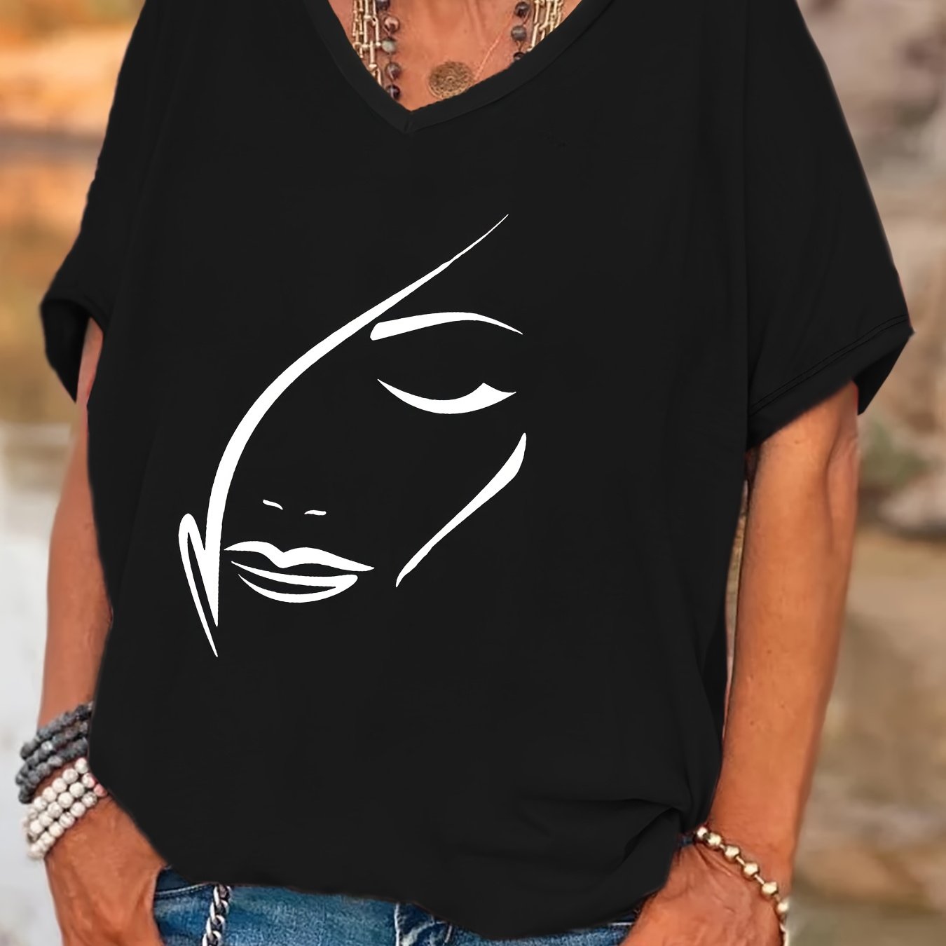 Plus Size Women's V-Neck Batwing Sleeve T-Shirt Casual Loose Fit All-Season