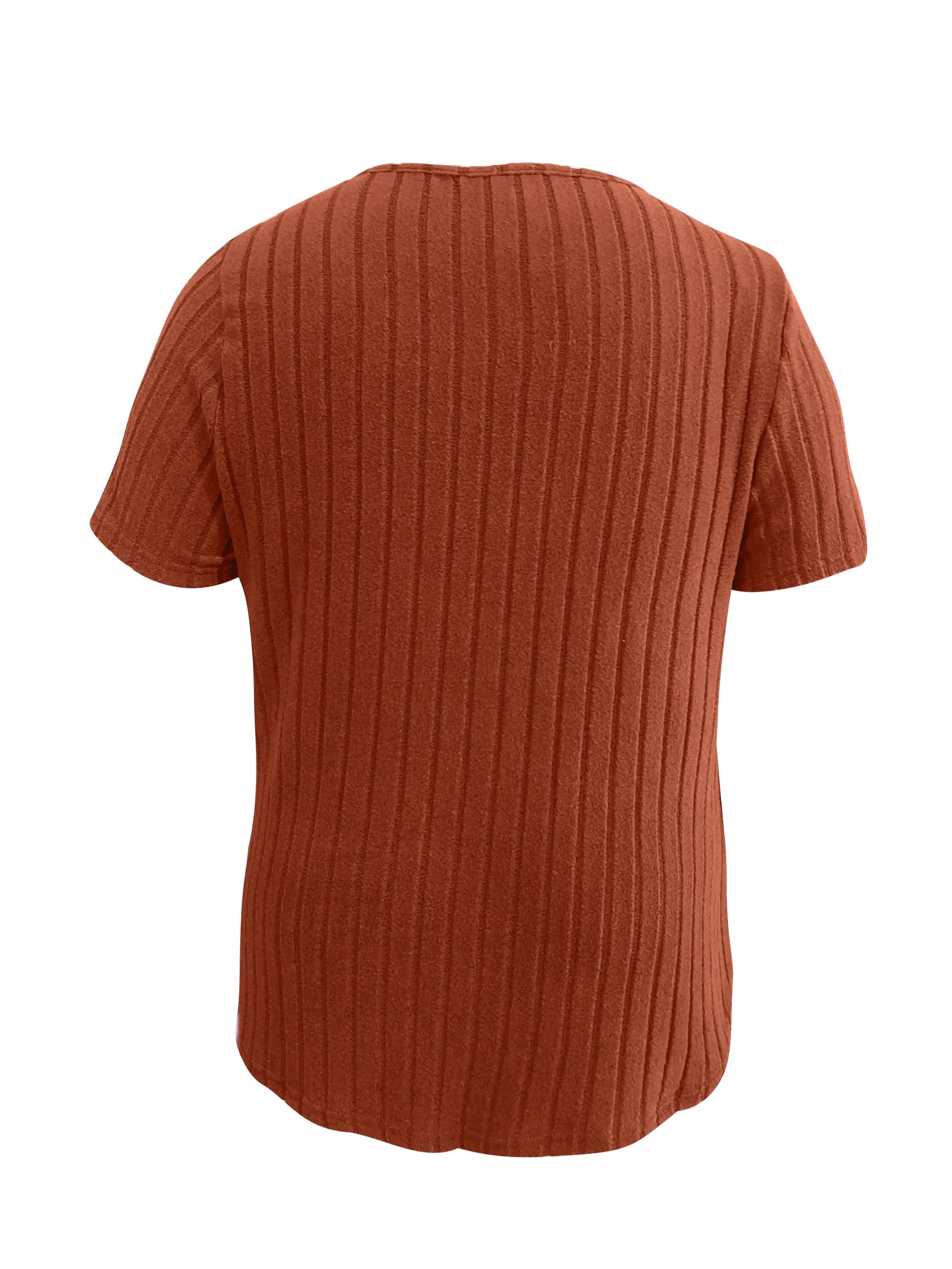 Plus Size Women's V-Neck Short Sleeve T-Shirt Stretchy Ribbed Blue Casual Top