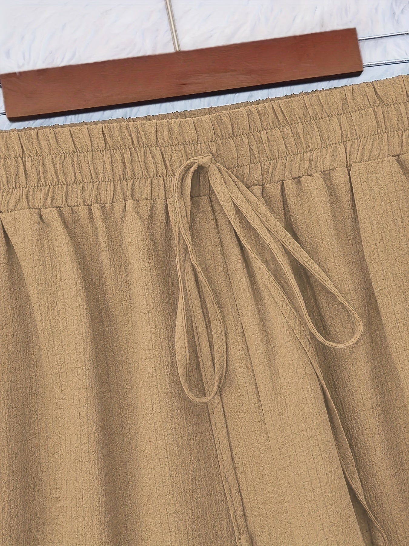Plus Size Women's Wide-Leg Casual Pants Elastic Waist Maroon All-Season
