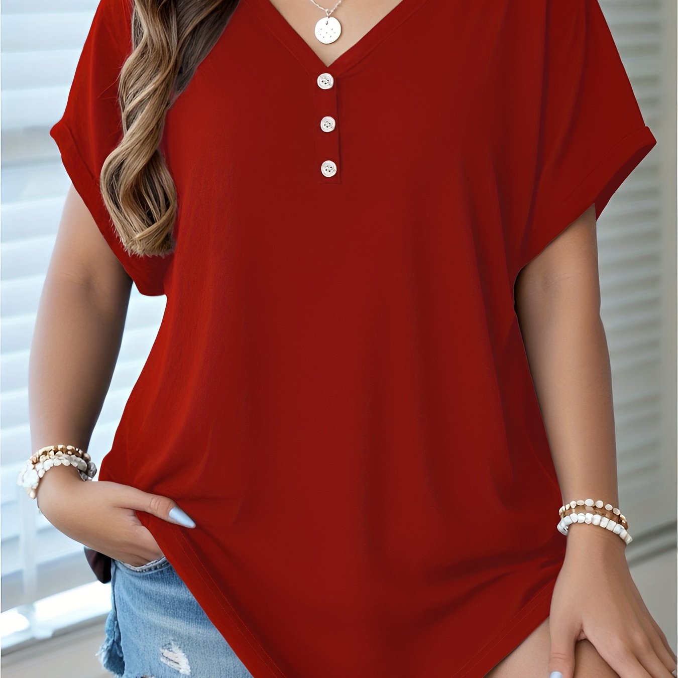 Plus Size Women V-Neck Short Sleeve Lightweight Casual Top