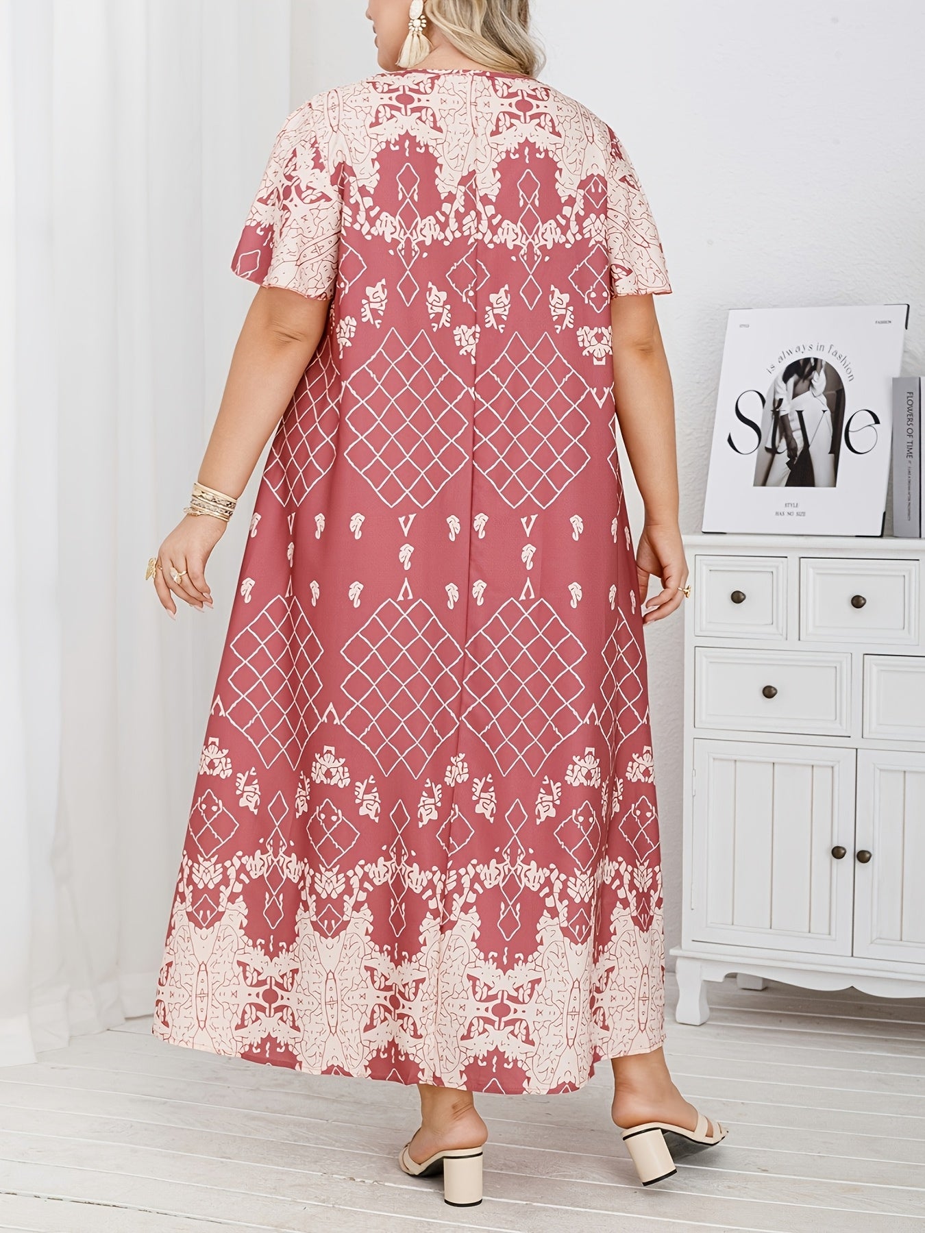 Plus Size Woven Polyester Blend Tunic Dress Crew Neck All-Season Middle Eastern Style