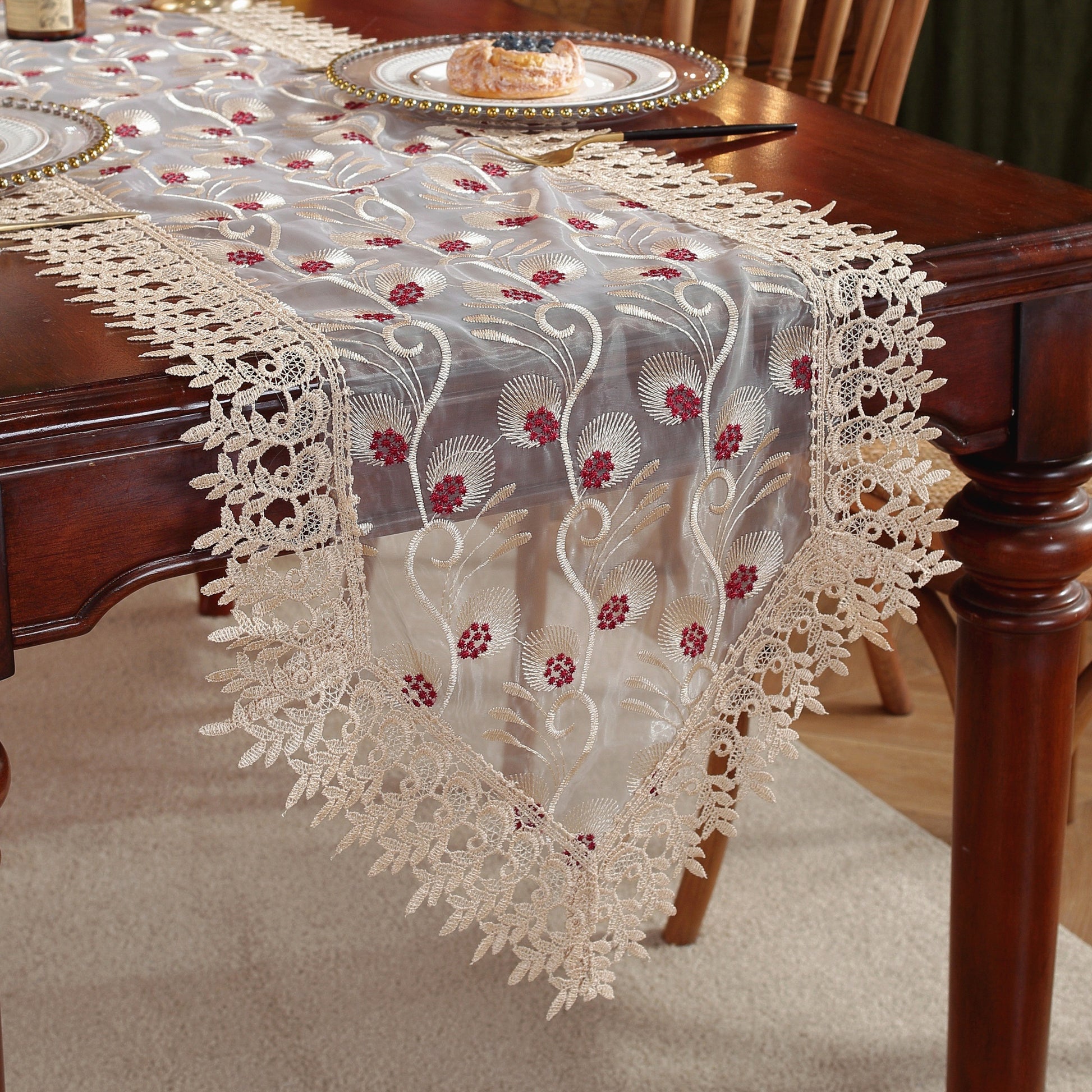 Embroidered Polyester Table Runner for Holiday and Wedding Decor