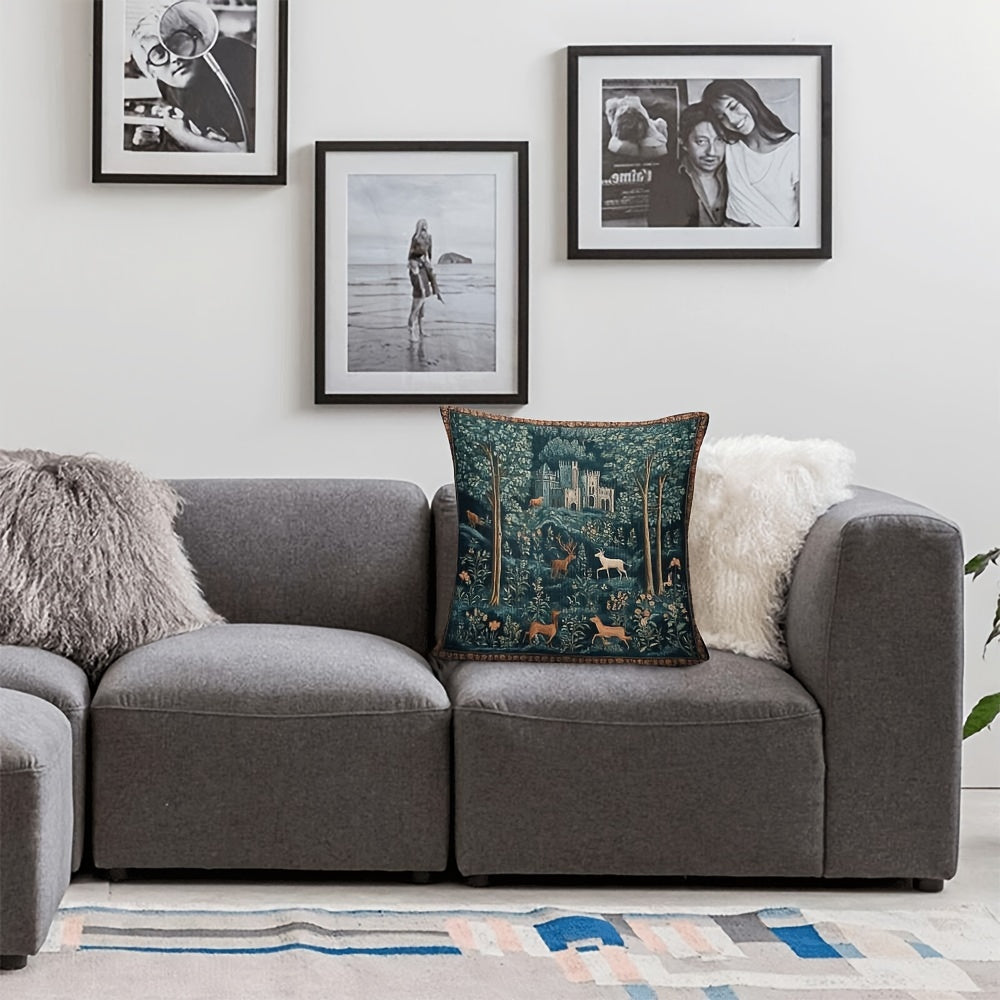 Polyester Pillow Cover Medieval Tapestry Style Double-Sided Decorative Zipper Living Room Decor