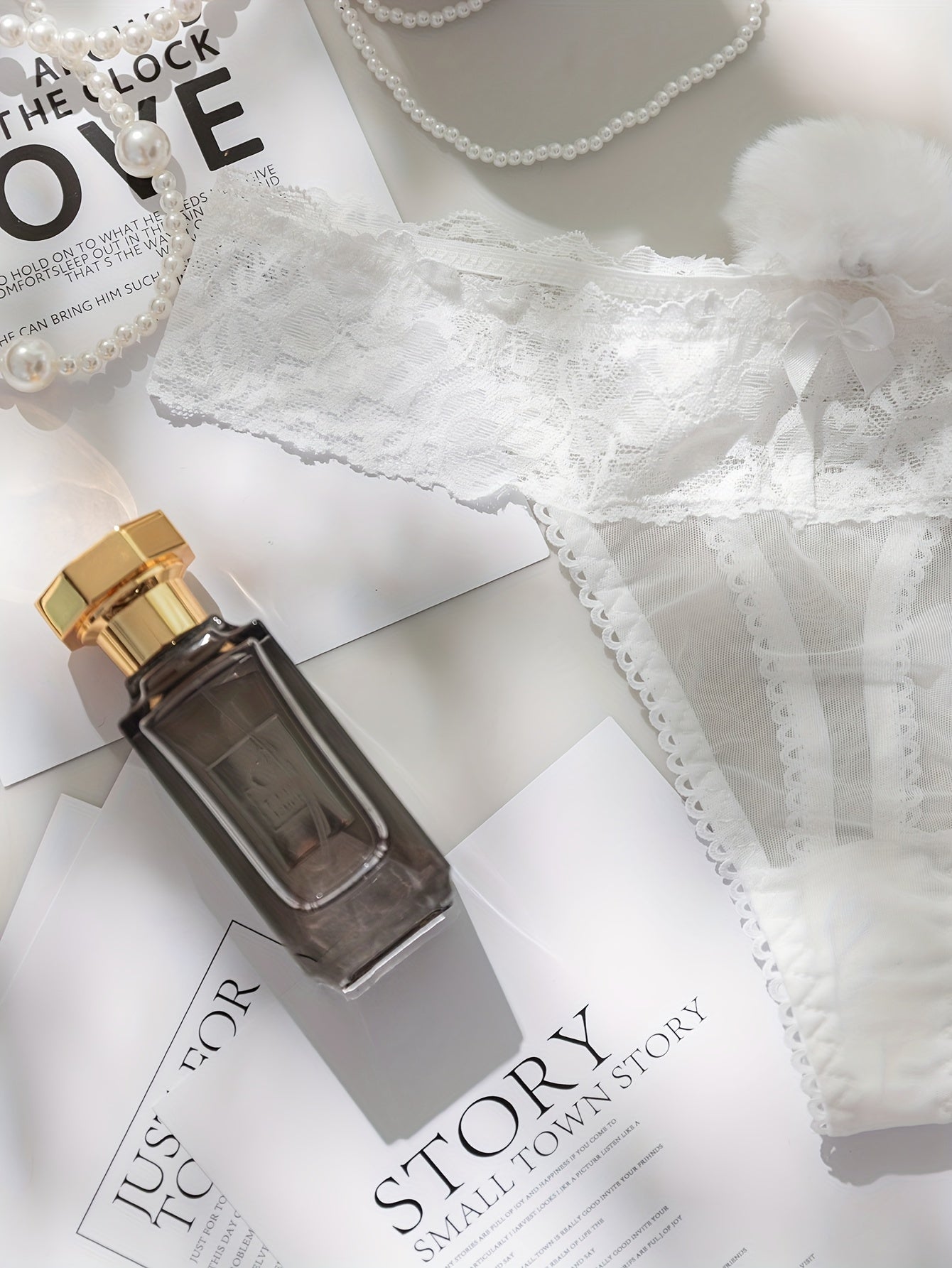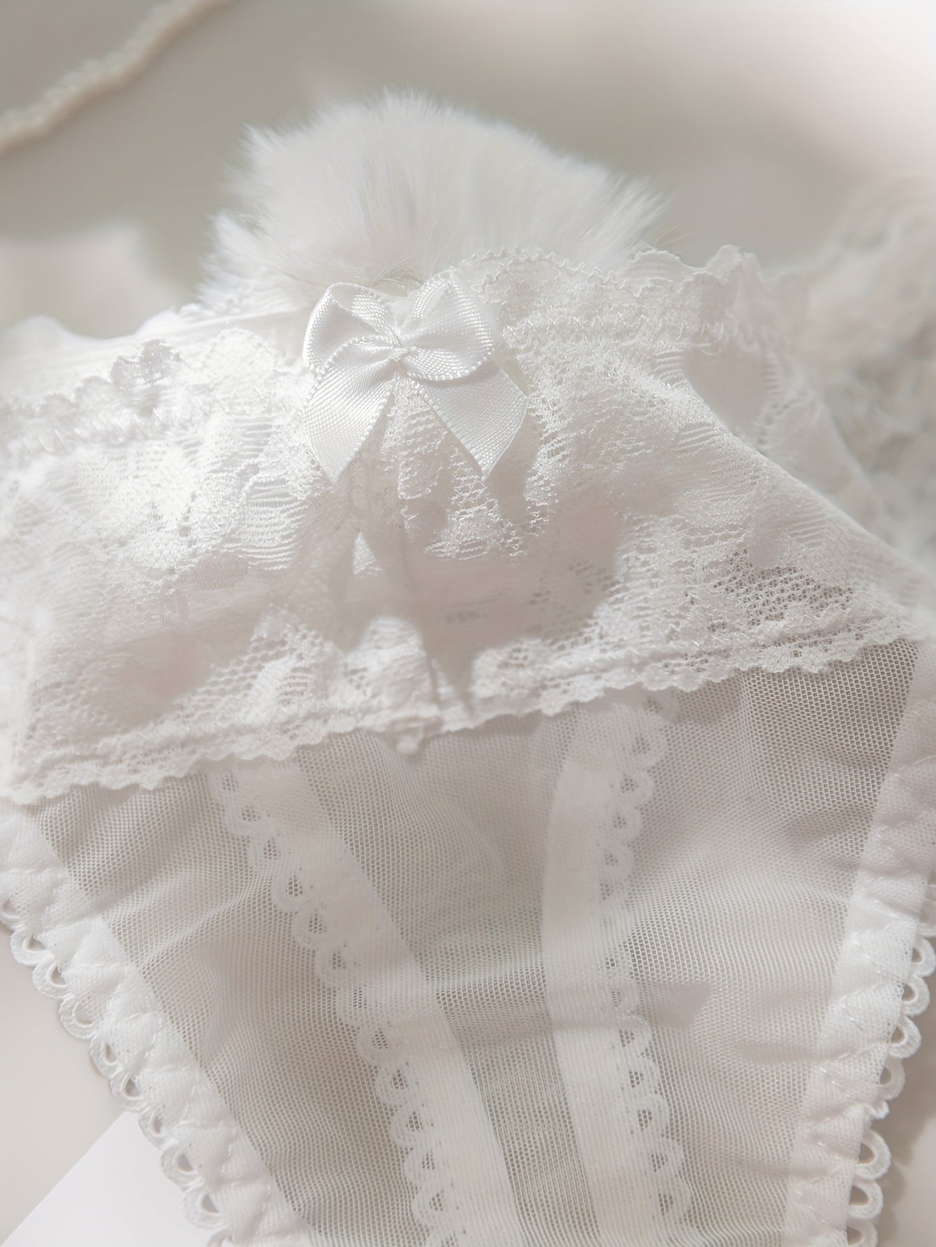 Women's Lace Trim Pompom Low Waist Panties Comfortable Underwear