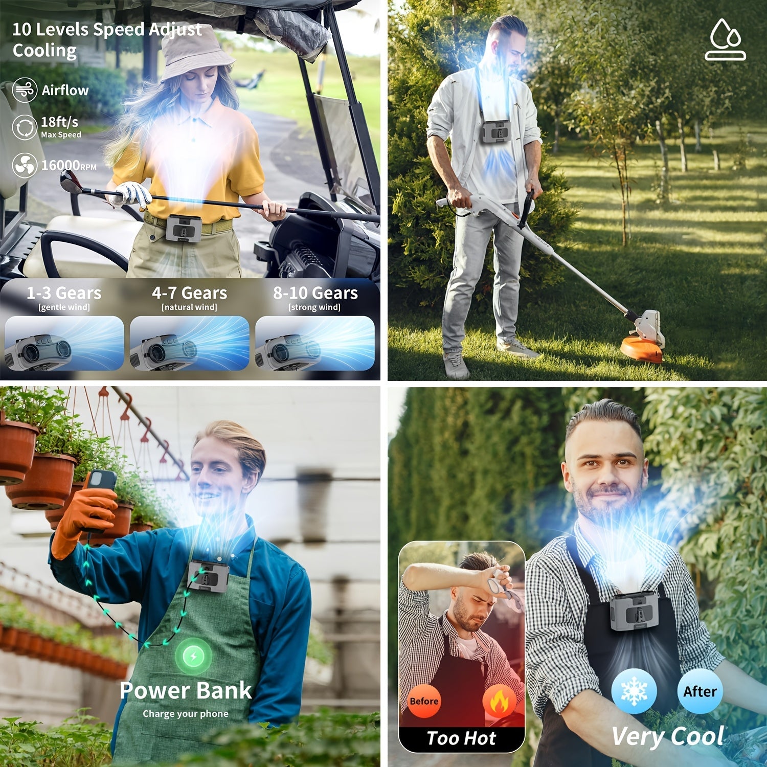 Wearable Waist Fan with Rechargeable Battery, 10 Speed Settings, Portable