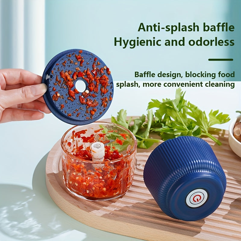 Portable Electric Garlic Chopper 260ml Glass Container USB Rechargeable Outdoor BBQ