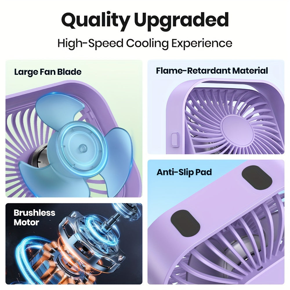 Mini USB Desk Fan Personal Portable Quiet Brushless Motor 4ft Cable