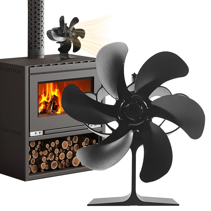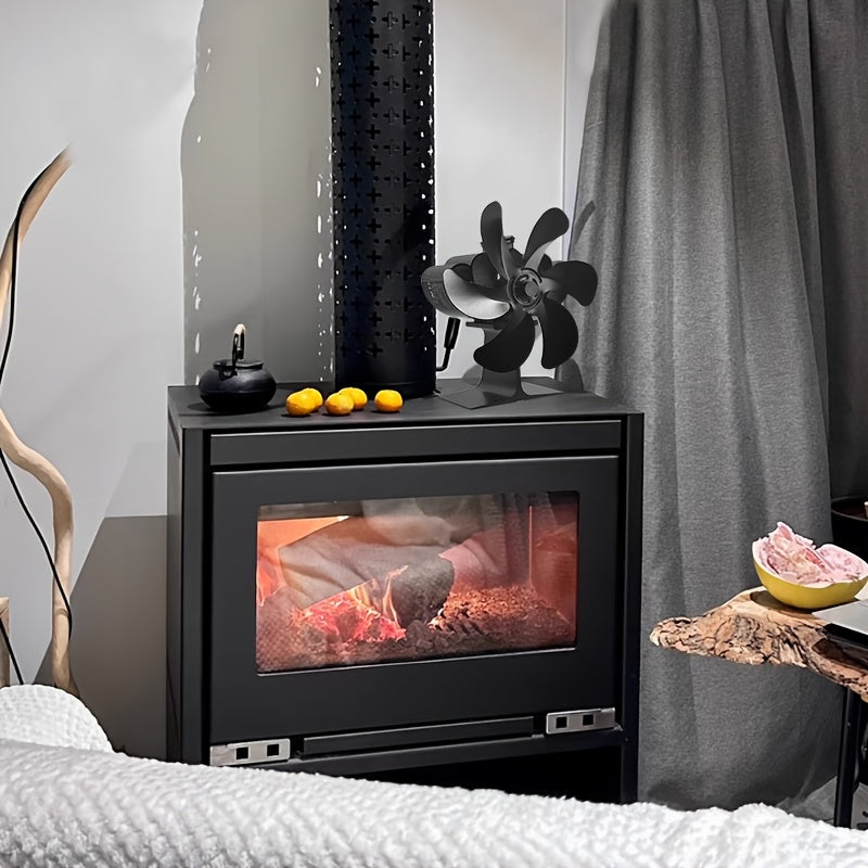 Portable Aluminum Wood Stove Fan for Fireplaces Log Burners Non-Electric 6 Blades