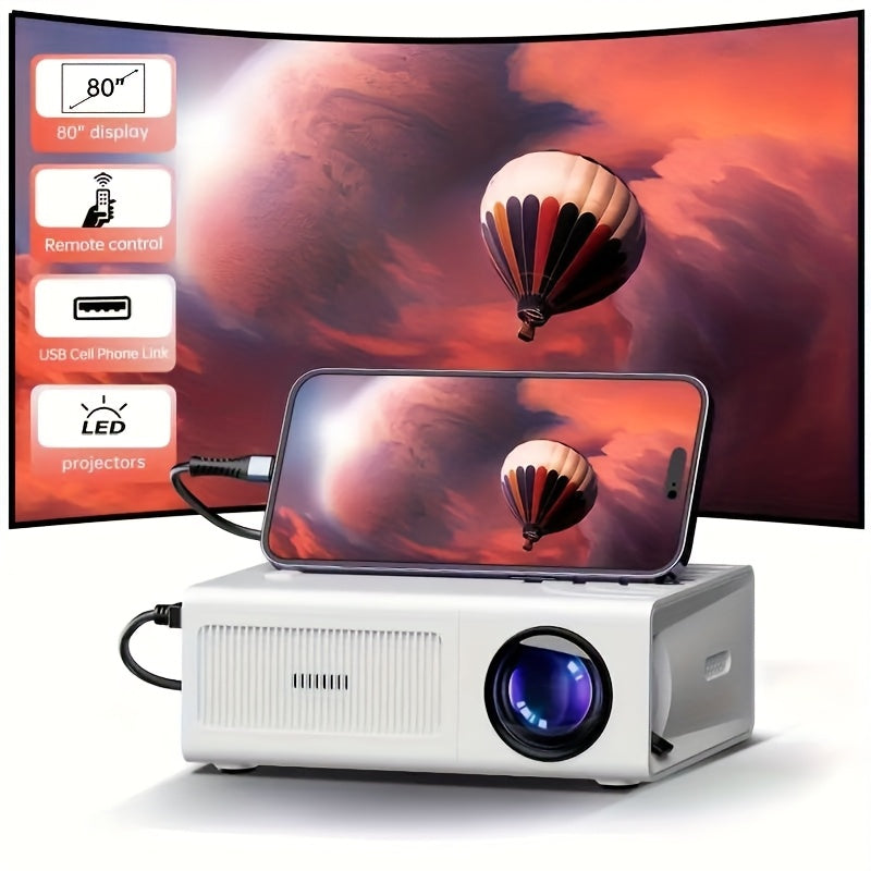 Portable Smart Projector for Home Theater Supports HD Videos Compatible with Smartphones and Gaming Consoles
