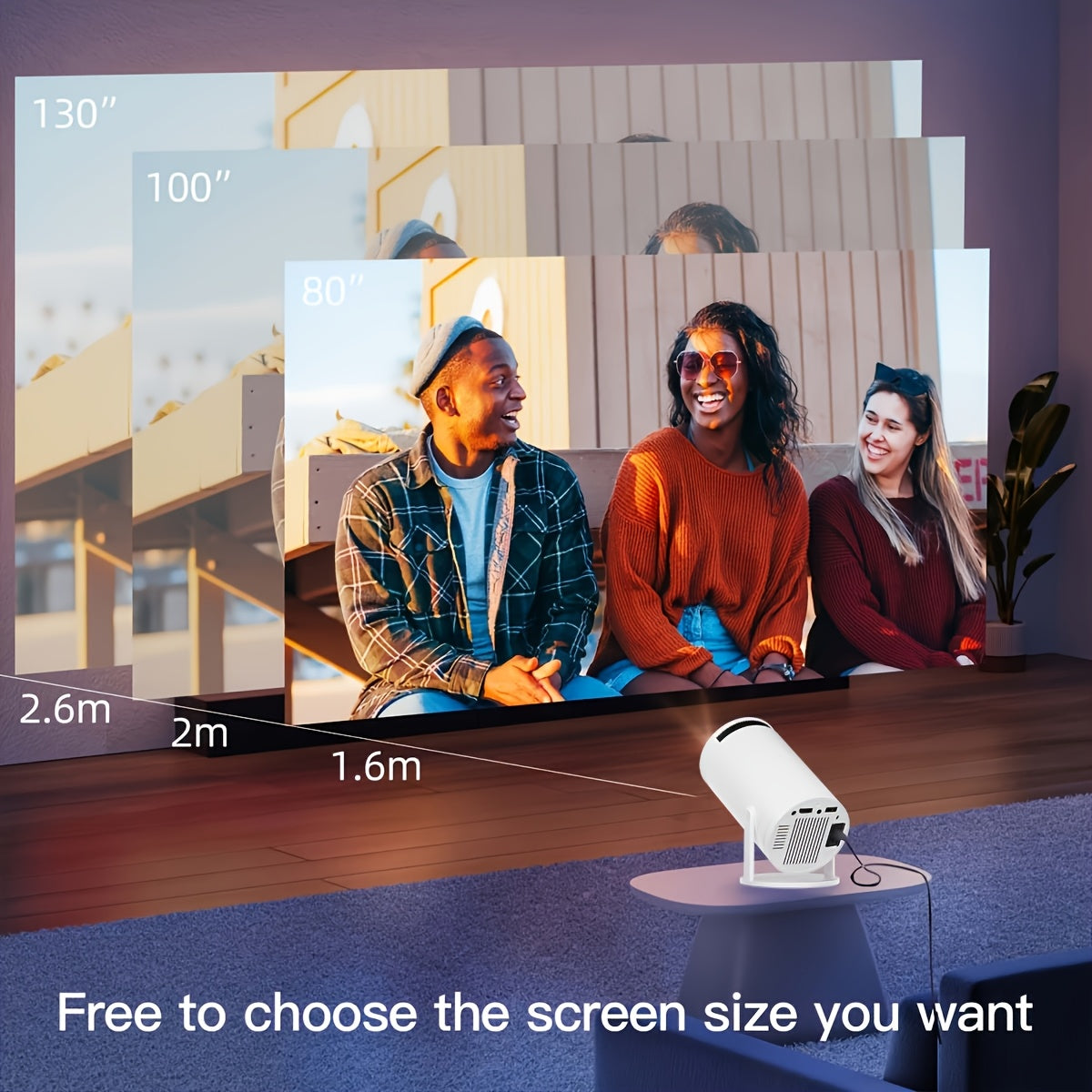 Portable Smart Projector with 180° Rotating Design for Bedroom 3D Sound