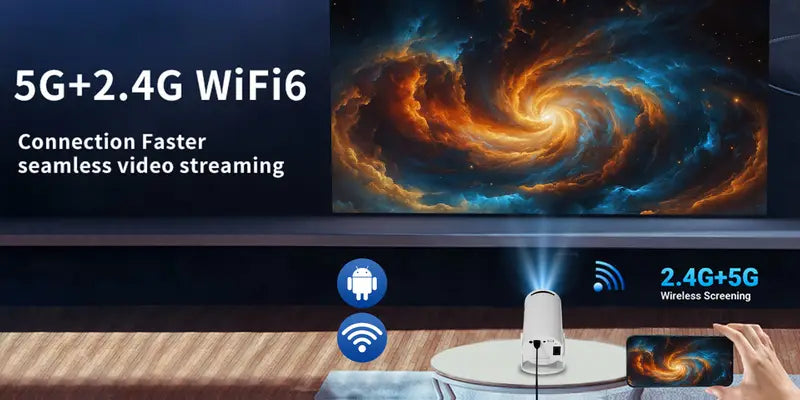 Portable Smart Projector With Auto Correction Wi-Fi HD 1080P