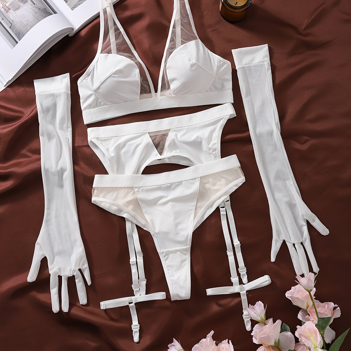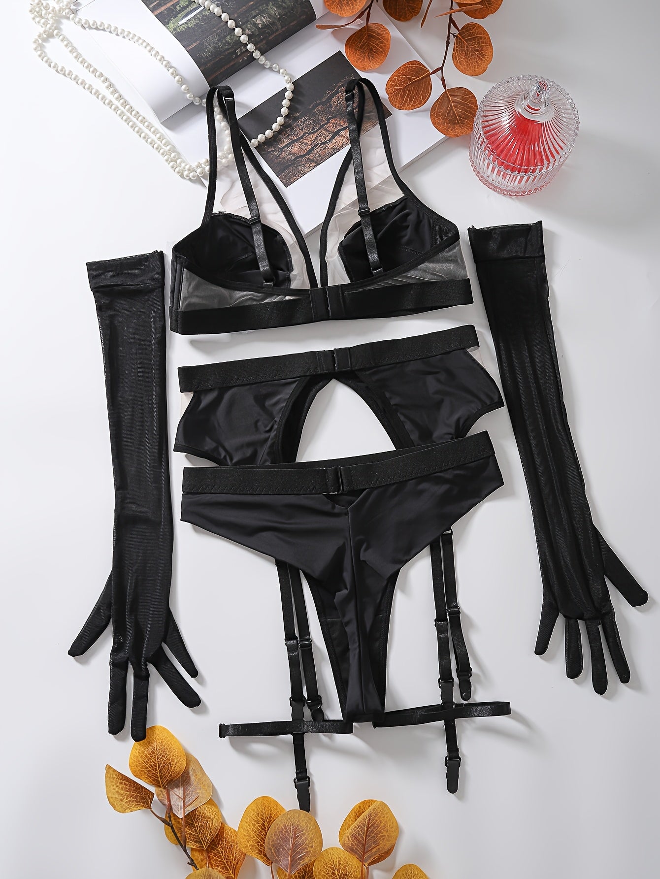Women’s Mesh Patchwork Sexy Gloves Set for Party and Fashion