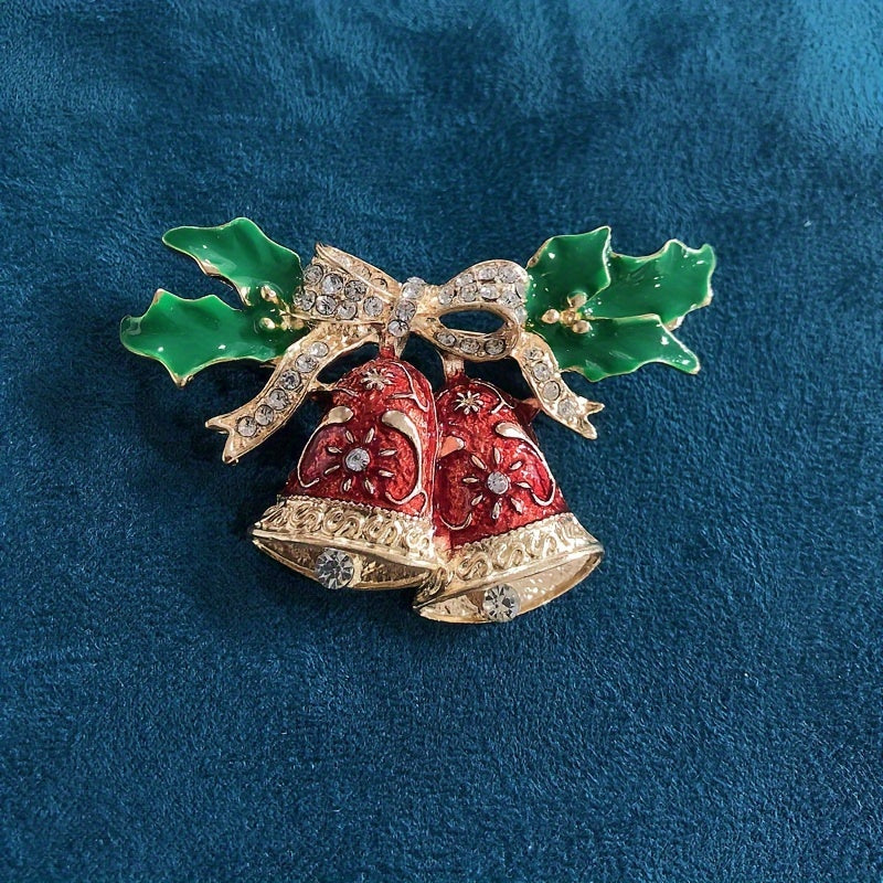 Punk Style Rhinestone Corsage Brooch Pin for Suits and Coats Christmas Bell Design