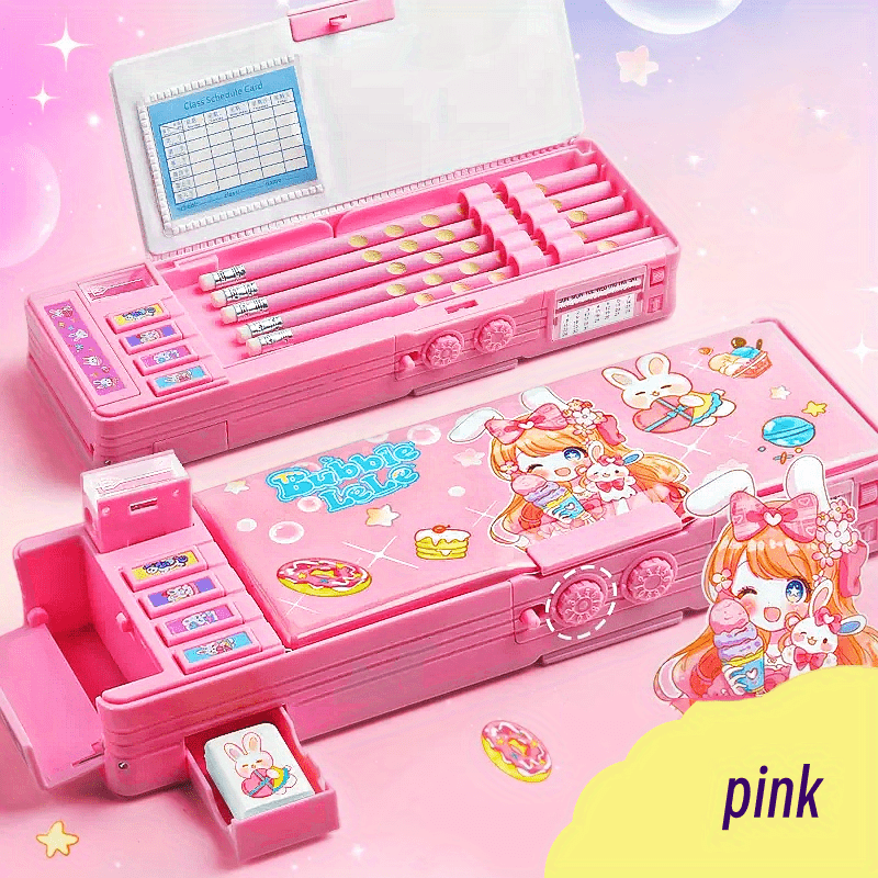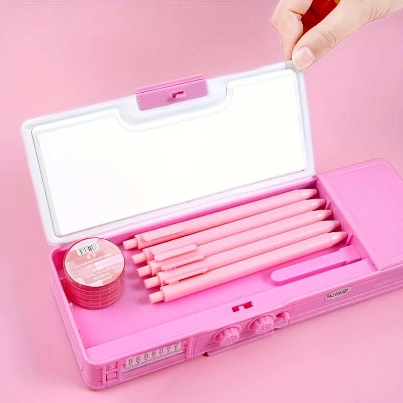 Purple Pencil Case with Password Lock, Colorful Compartments, Portable Stationery Organizer for Girls