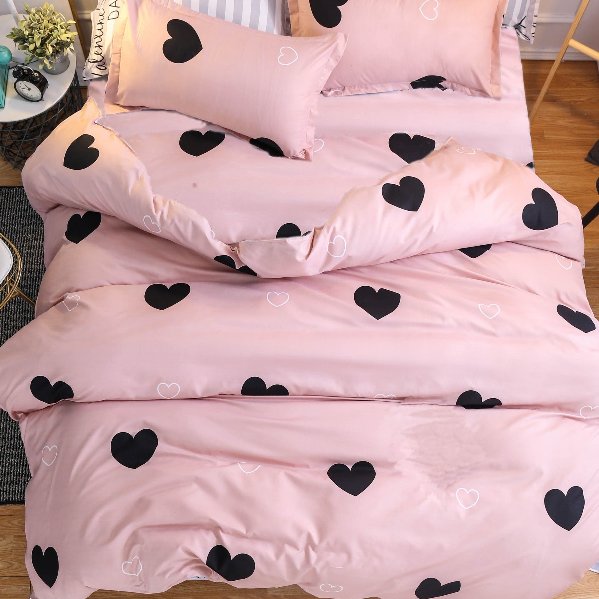 Pink Quilt Cover and Pillowcase Set with Love Holiday Blessing Design, 2 or 3 Piece