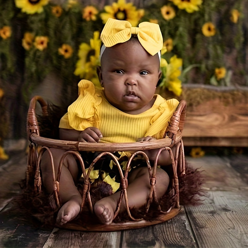 Rattan Basket Wood Bench Photography Prop Posing Chair Home Decor Accessories