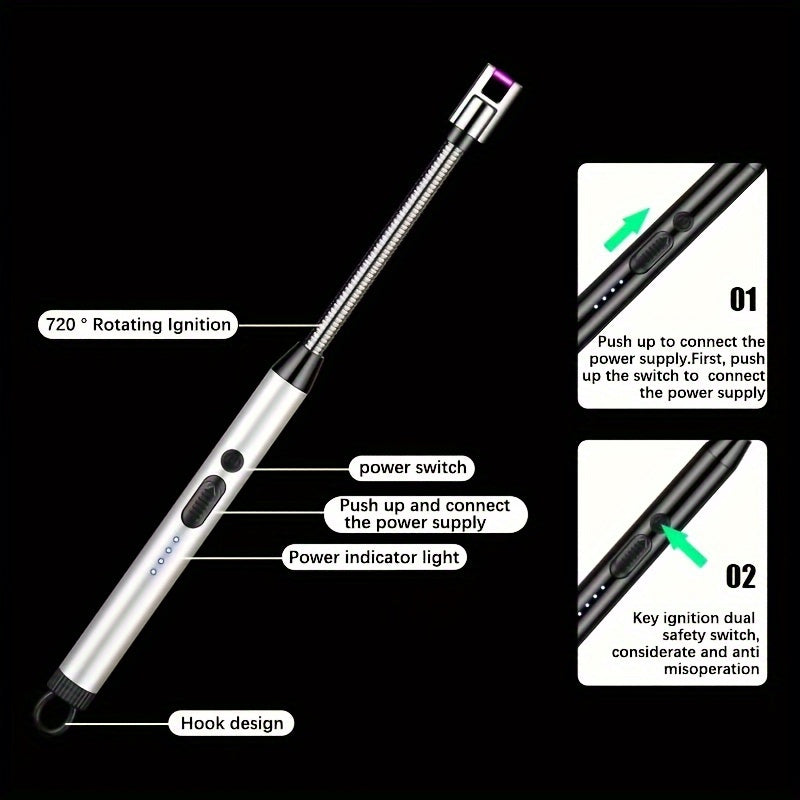 Rechargeable USB Arc Lighter Black Windproof Outdoor Indoor Candle Cooking