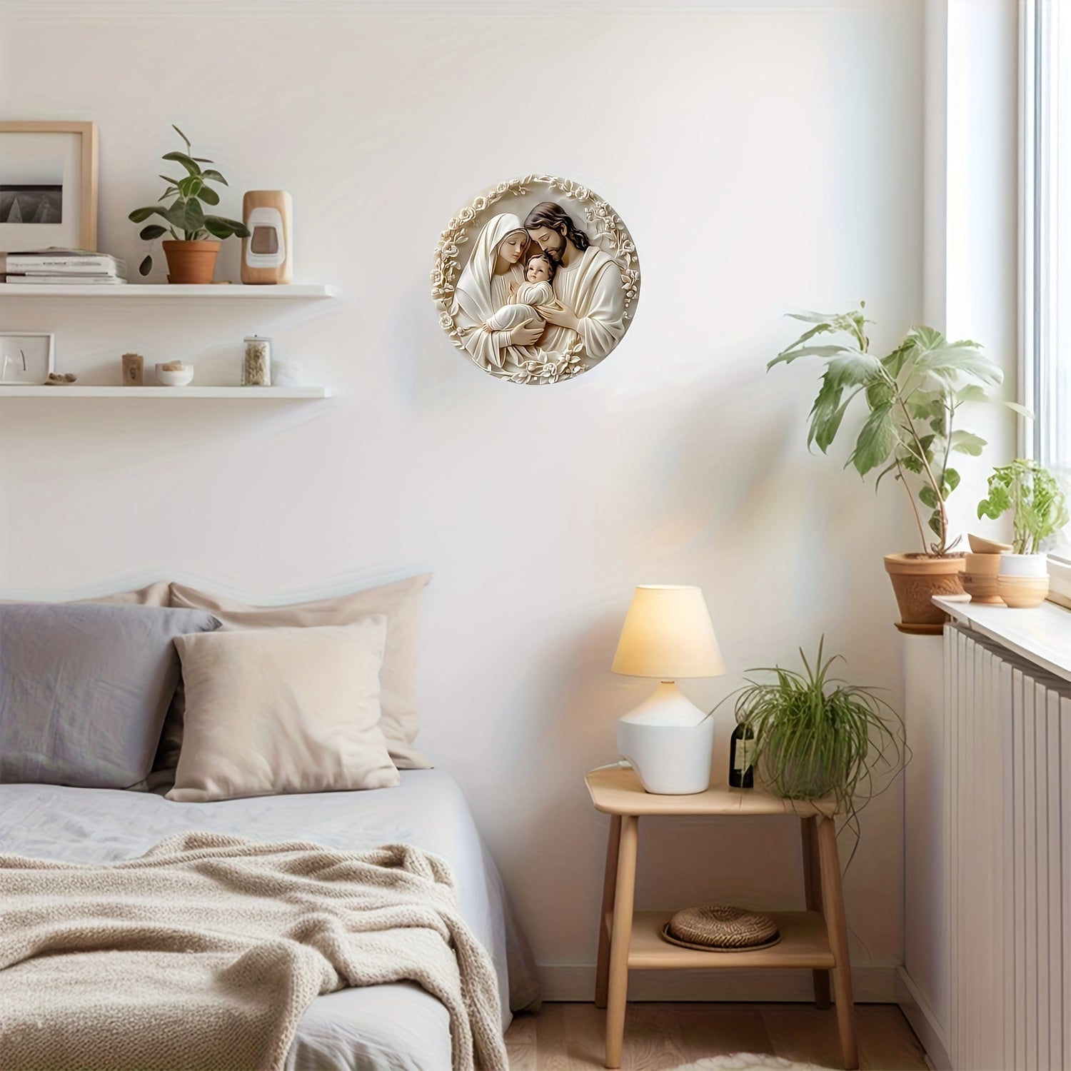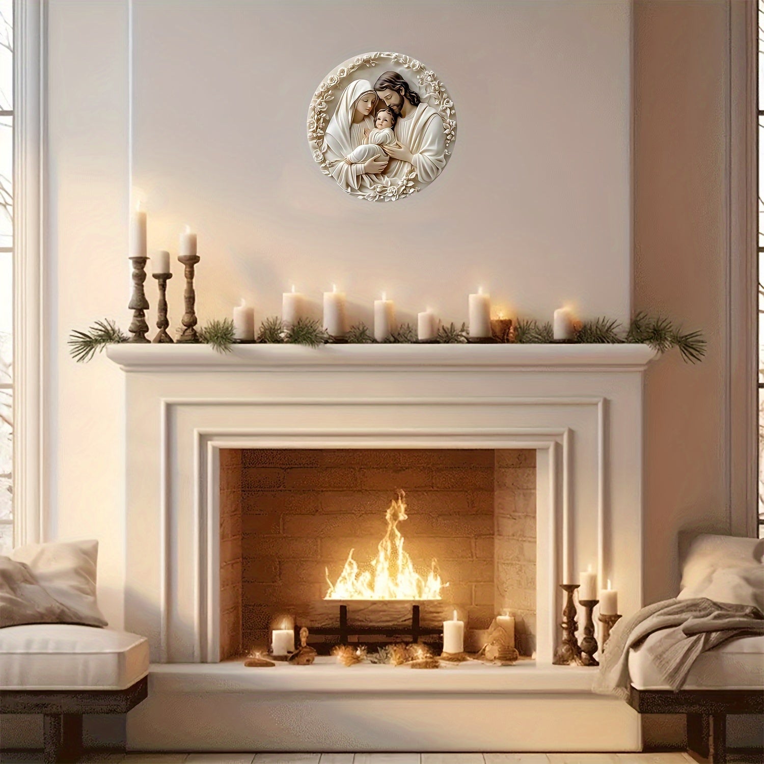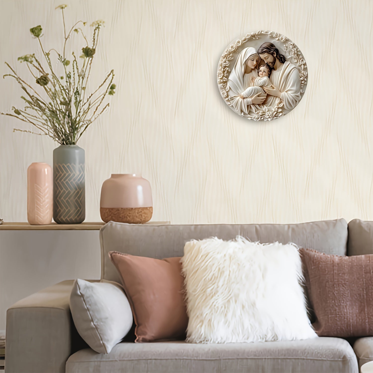 Religious Aluminum Wall Hanging Sign Sacred Family Metal Art Weather Resistant Textured Decor