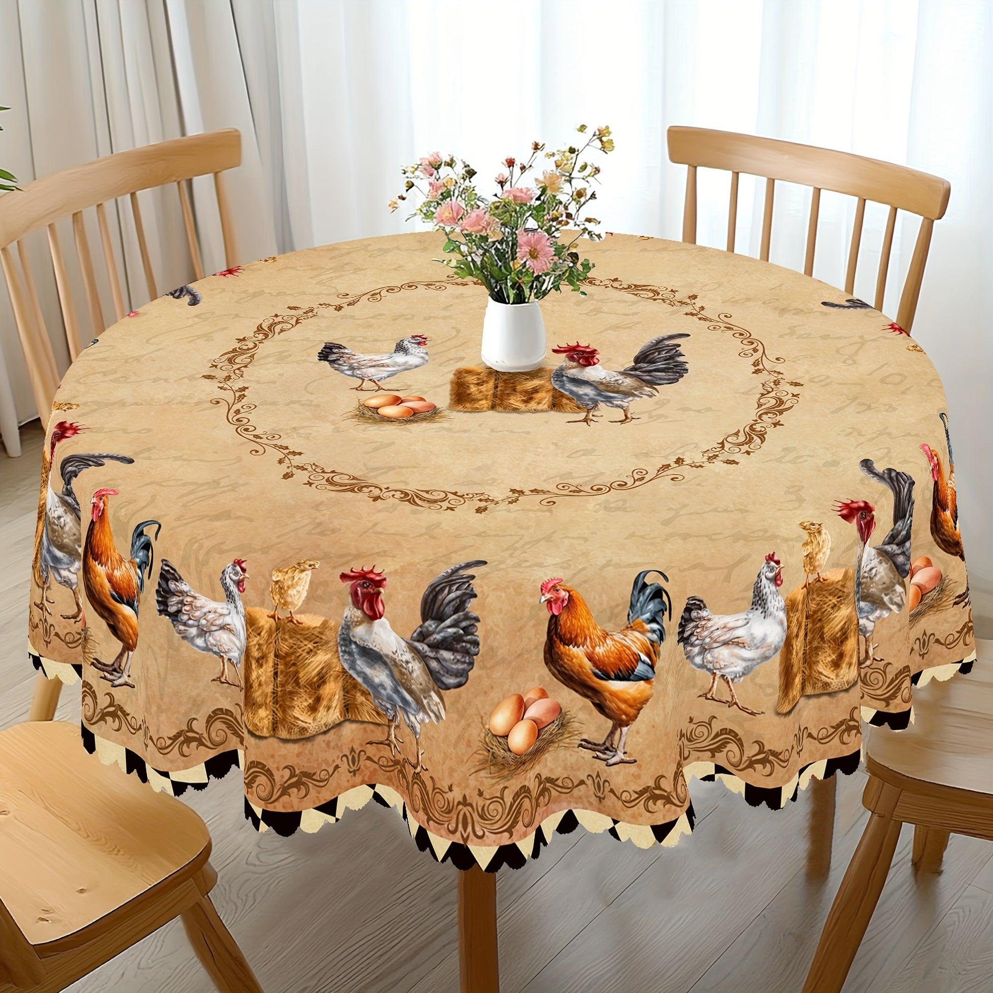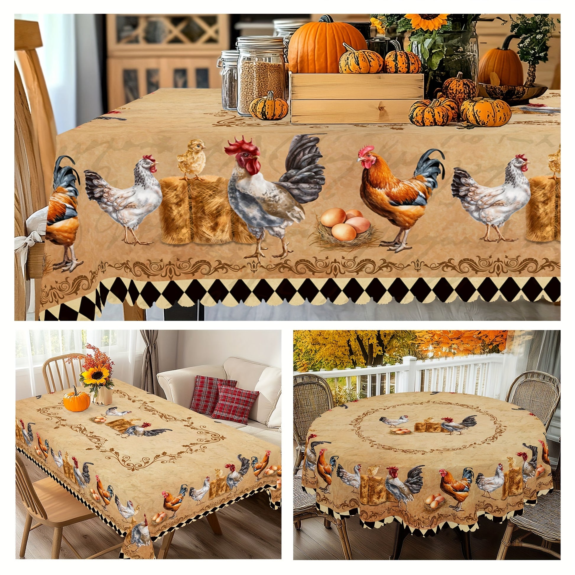 Farmhouse Rooster Chick Egg Print Tablecloth for Indoor Outdoor Use