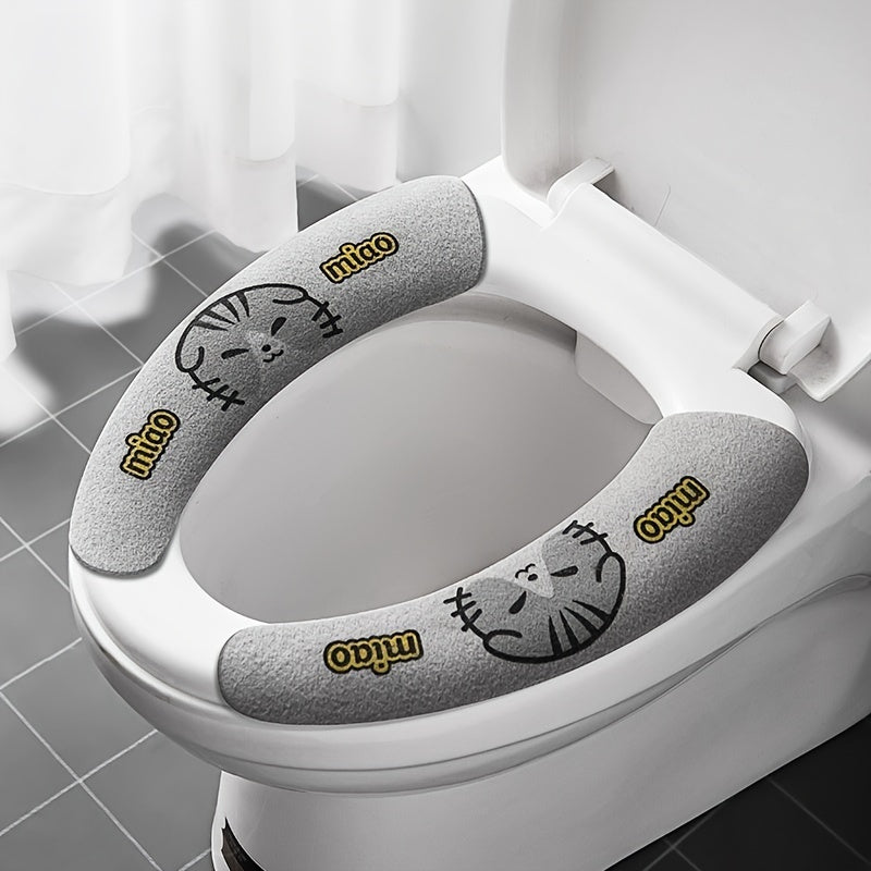 Reusable Animal Print Toilet Seat Cushion Gray Blue Orange Green Soft Fabric Half-Round Non-Slip