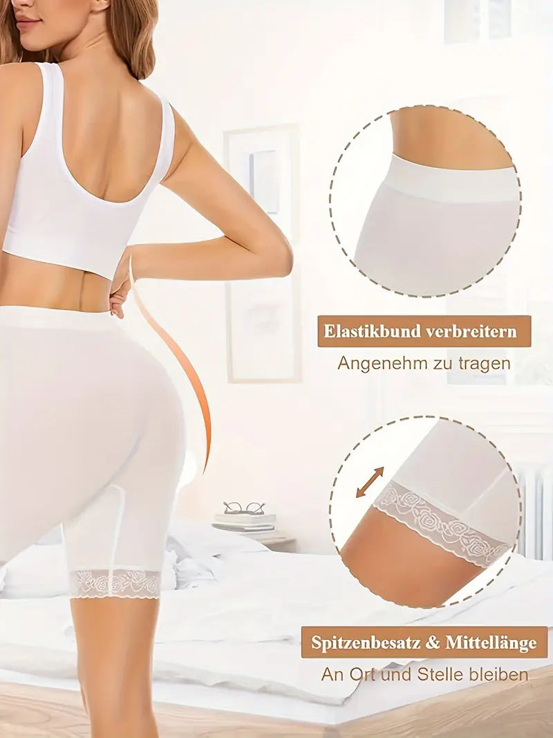 Women's Seamless High-Waist Chub Rub Shorts Anti-Chafing Lace Trim Nylon Elastane