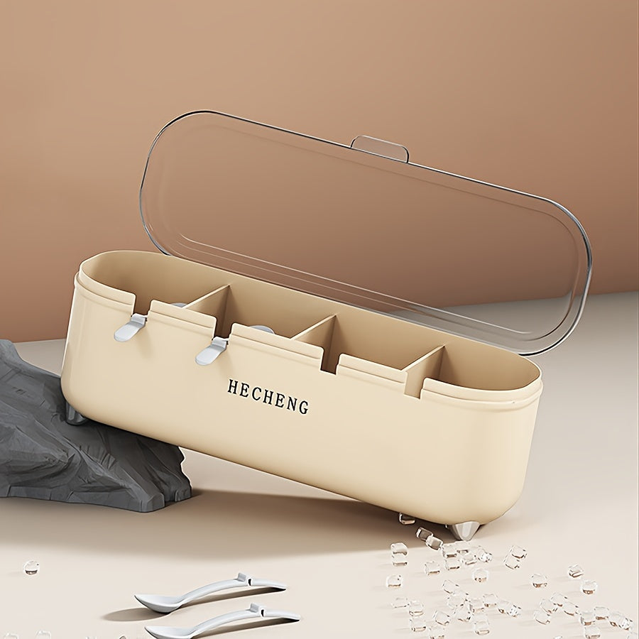 4-Compartment Seasoning Box with Lid and Spoon for Kitchen Storage