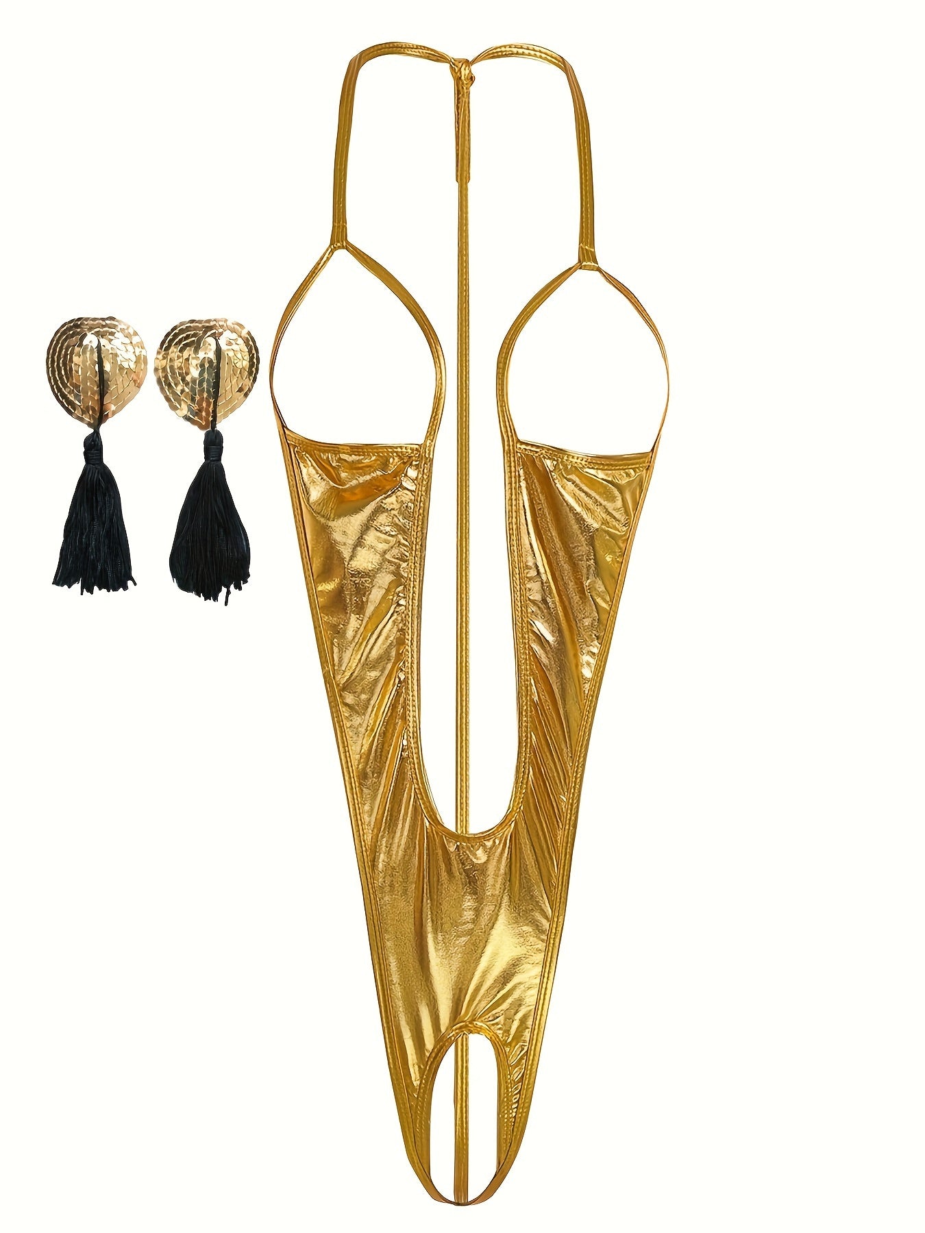 Women's Lingerie Set with Breast Stickers and Hollow Design Body Suit