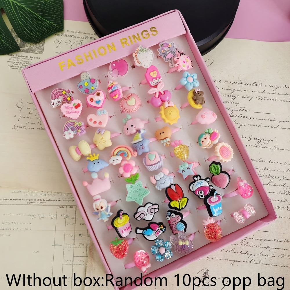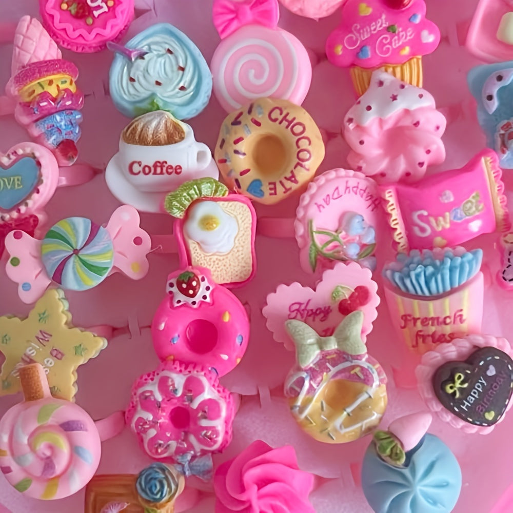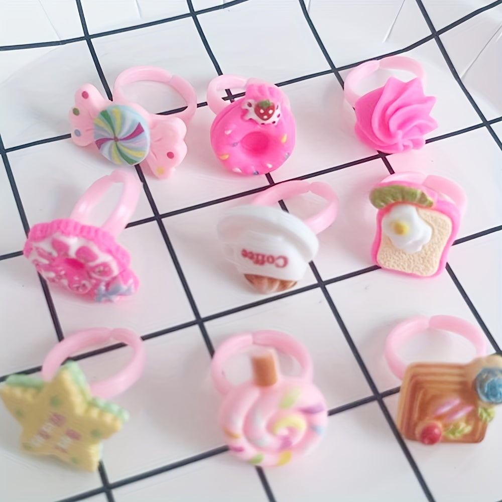 Set of 10 Food-Themed Resin Rings for Girls Age 3-14, Mixed Colors