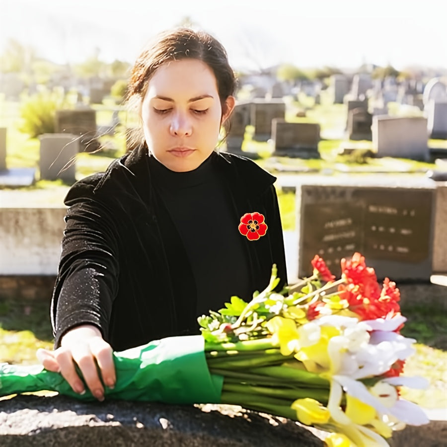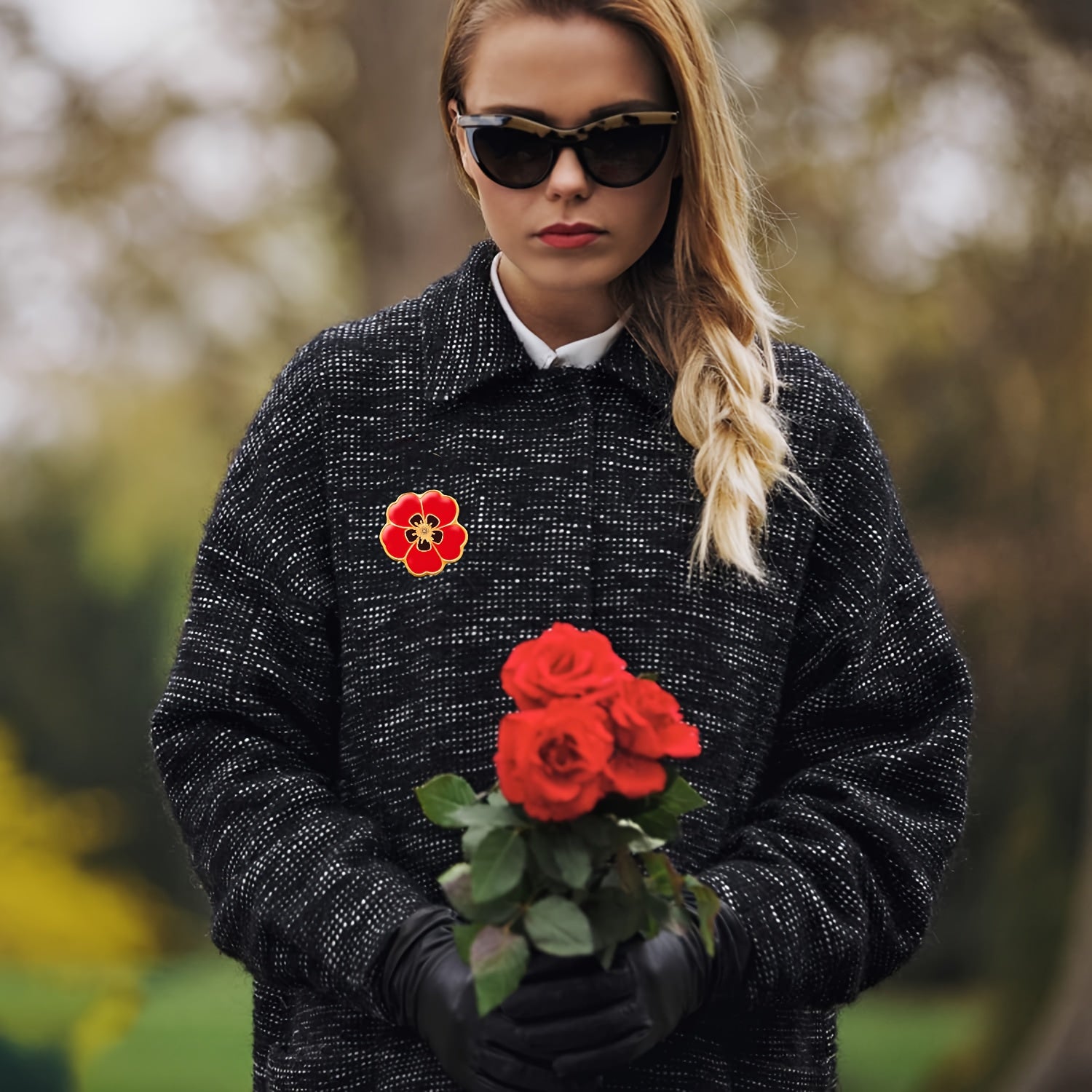 Set of 10 Patriotic Red Flower Alloy Brooches for Men and Women
