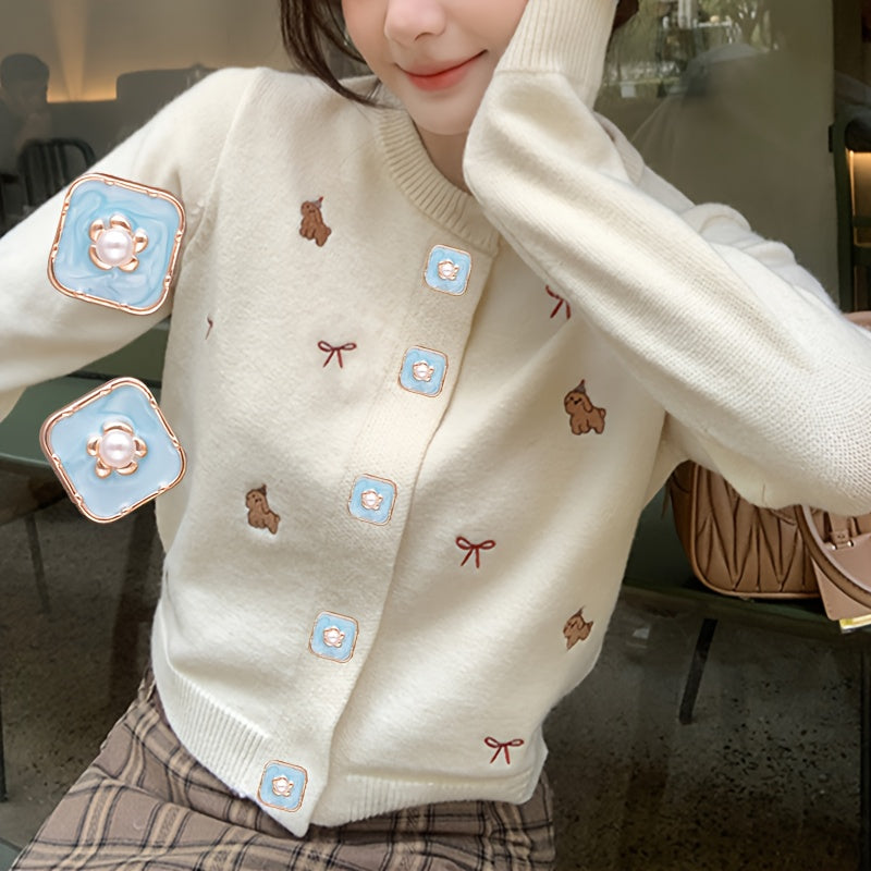 Set of 10 Square Alloy Buttons with Pearls and Flowers for Sewing Crafts and Clothing Accessories