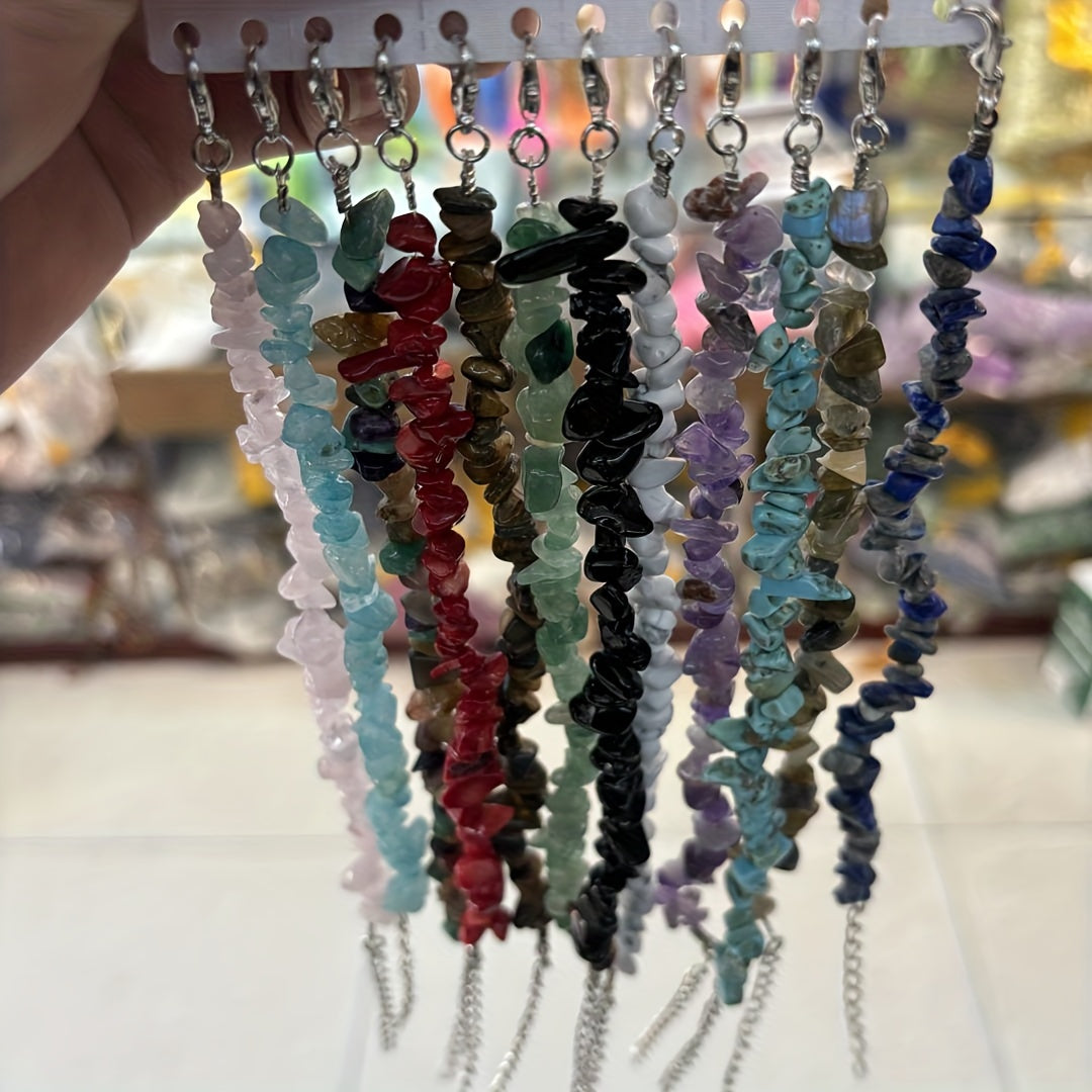 Set of 12 Natural Stone Bracelets Amethyst Tiger Eye Obsidian Adjustable Women Jewelry