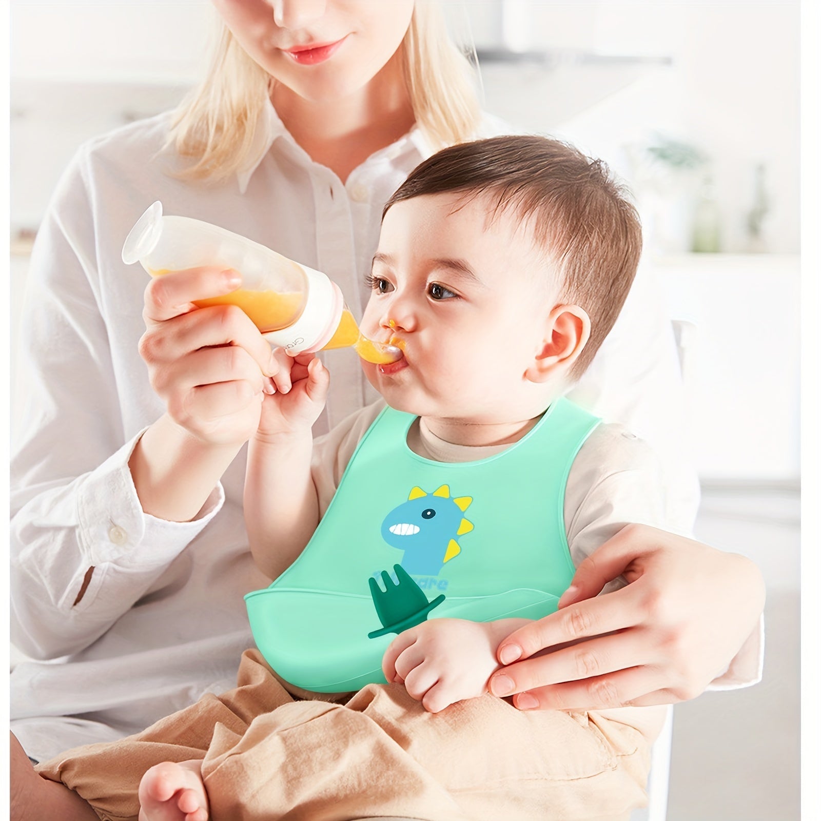 Set of 2 Kids Silicone Dinosaur Utensils Forks and Spoons Food-Grade Materials
