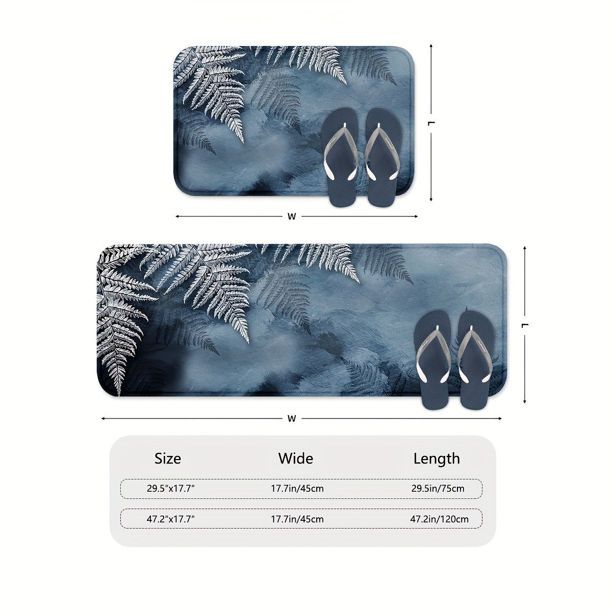 Set of 2 Non-Slip Machine Washable Kitchen Rugs Absorbent Polyester Floor Mats