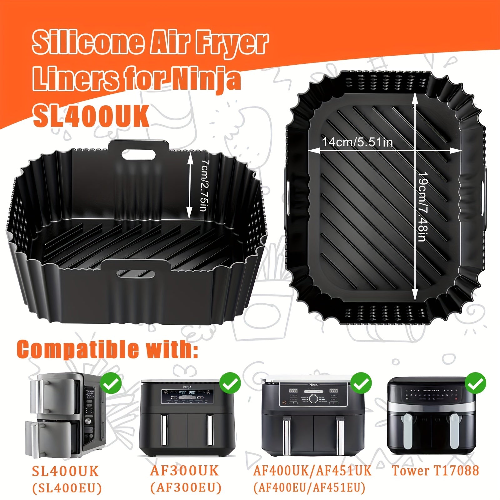 Set of 2 Reusable Silicone Air Fryer Liners for Basket Non-Stick Food Safe