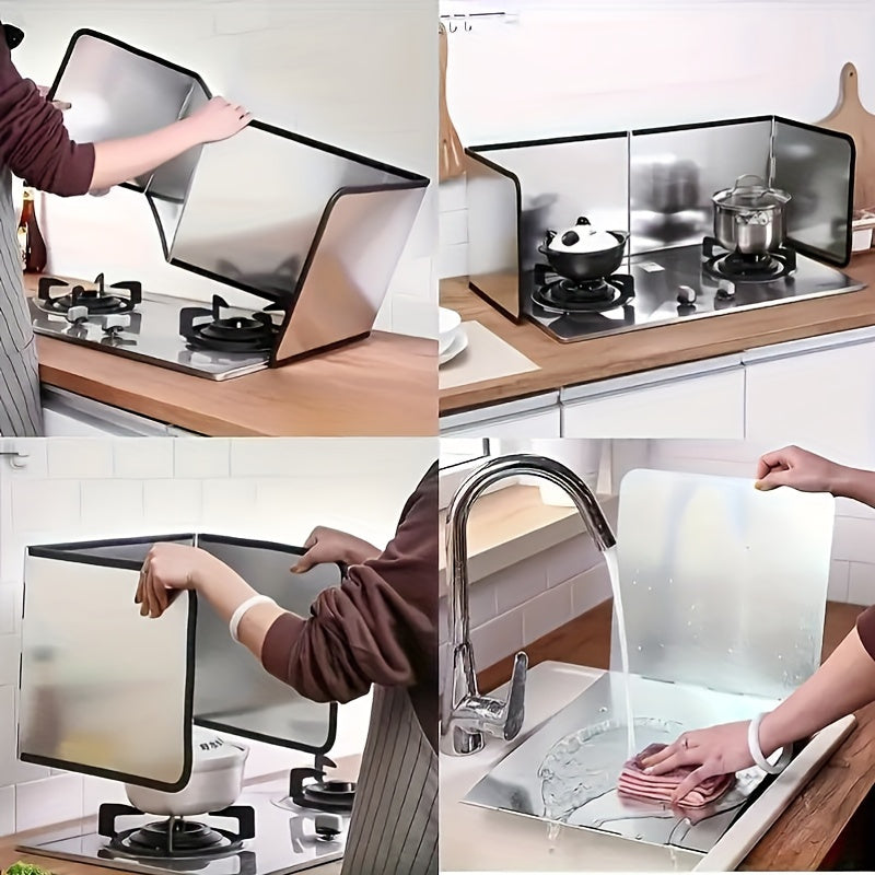 Set of 2 stainless steel splash guards with foldable panels for stove protection heat resistant