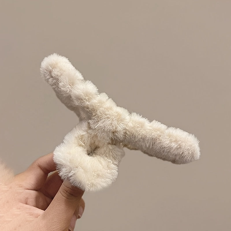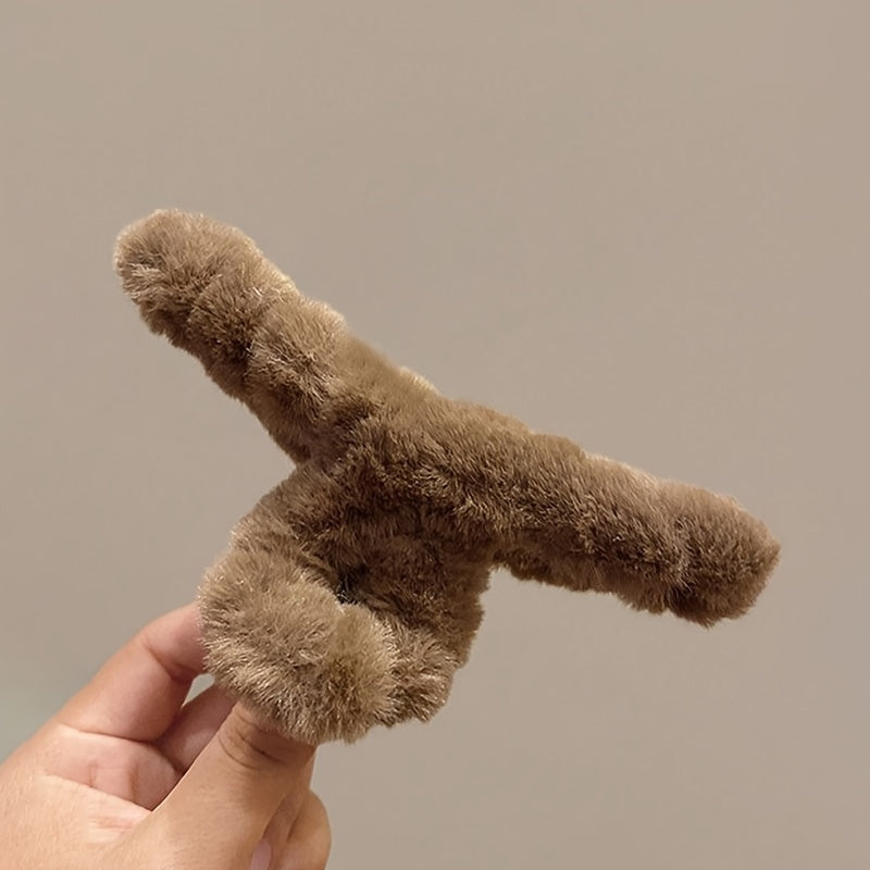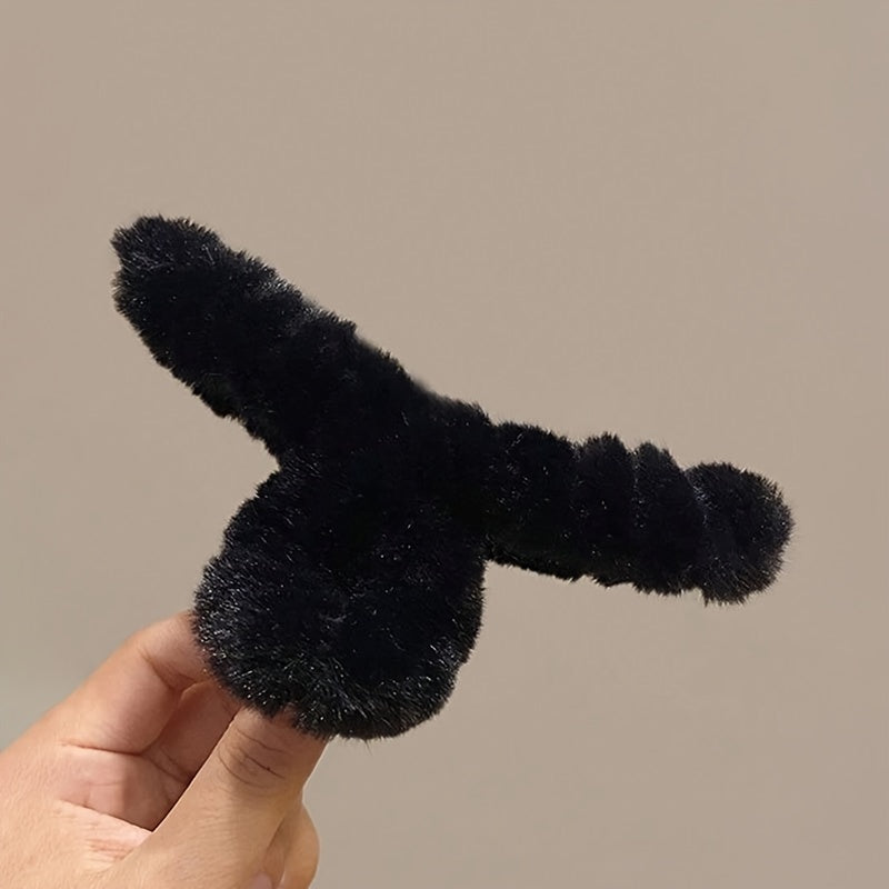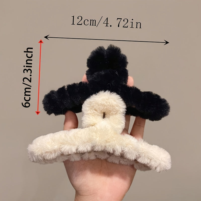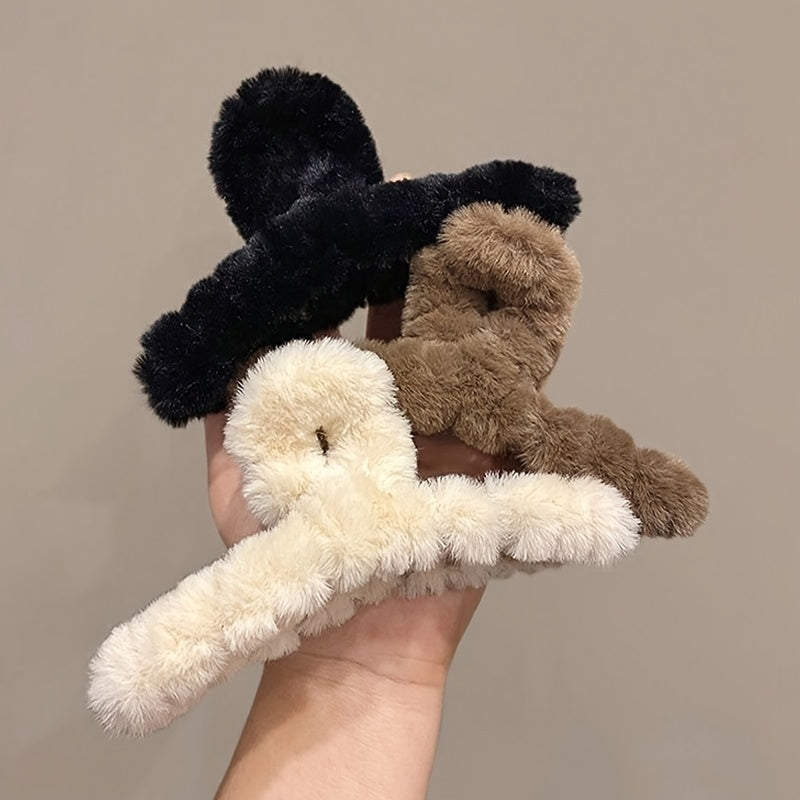 Set of 3 Large Flannelette Hair Claw Clips Oval Solid Color Elegant Fuzzy Hair Accessories for Festive Hairstyles