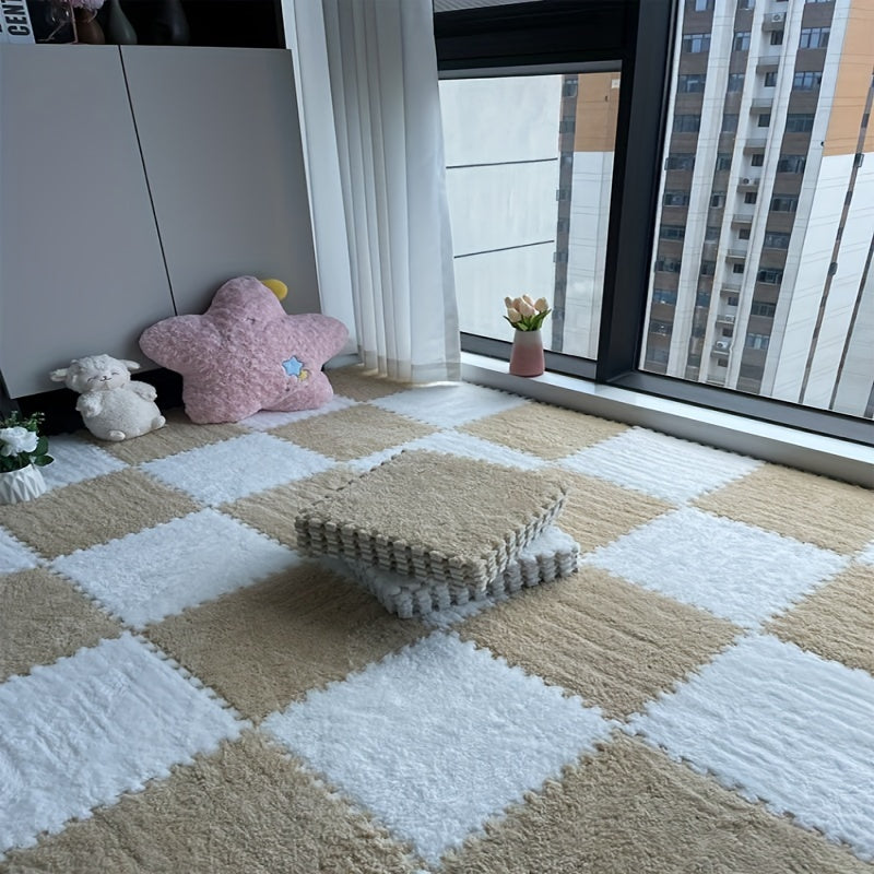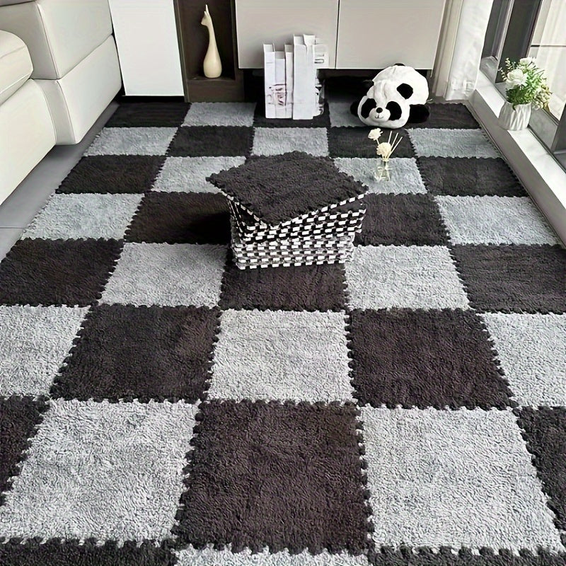 Set of 30 Braided Flannel Area Rugs Square Mats Low Pile Floor Tiles for Bedroom Living Room