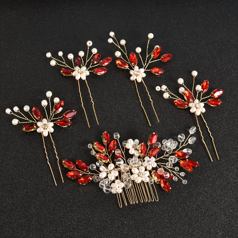 Set of 5 Bohemian Wedding Hair Accessories for Bride Romantic U-Shaped Flower Bead Hair Clips