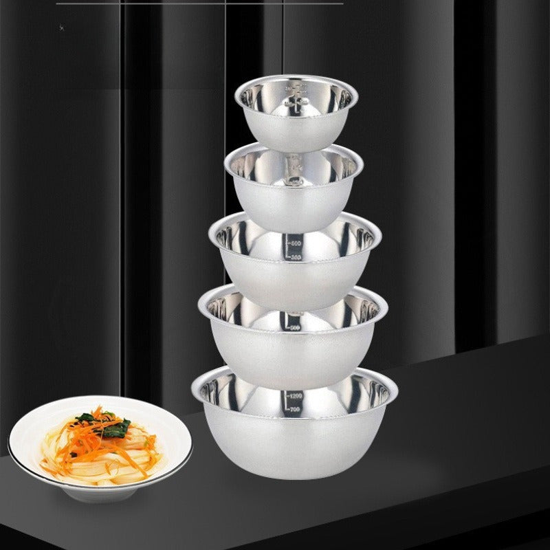 Set of 5 Stainless Steel Kitchenware Bowls for Salads Soups Baking and Serving