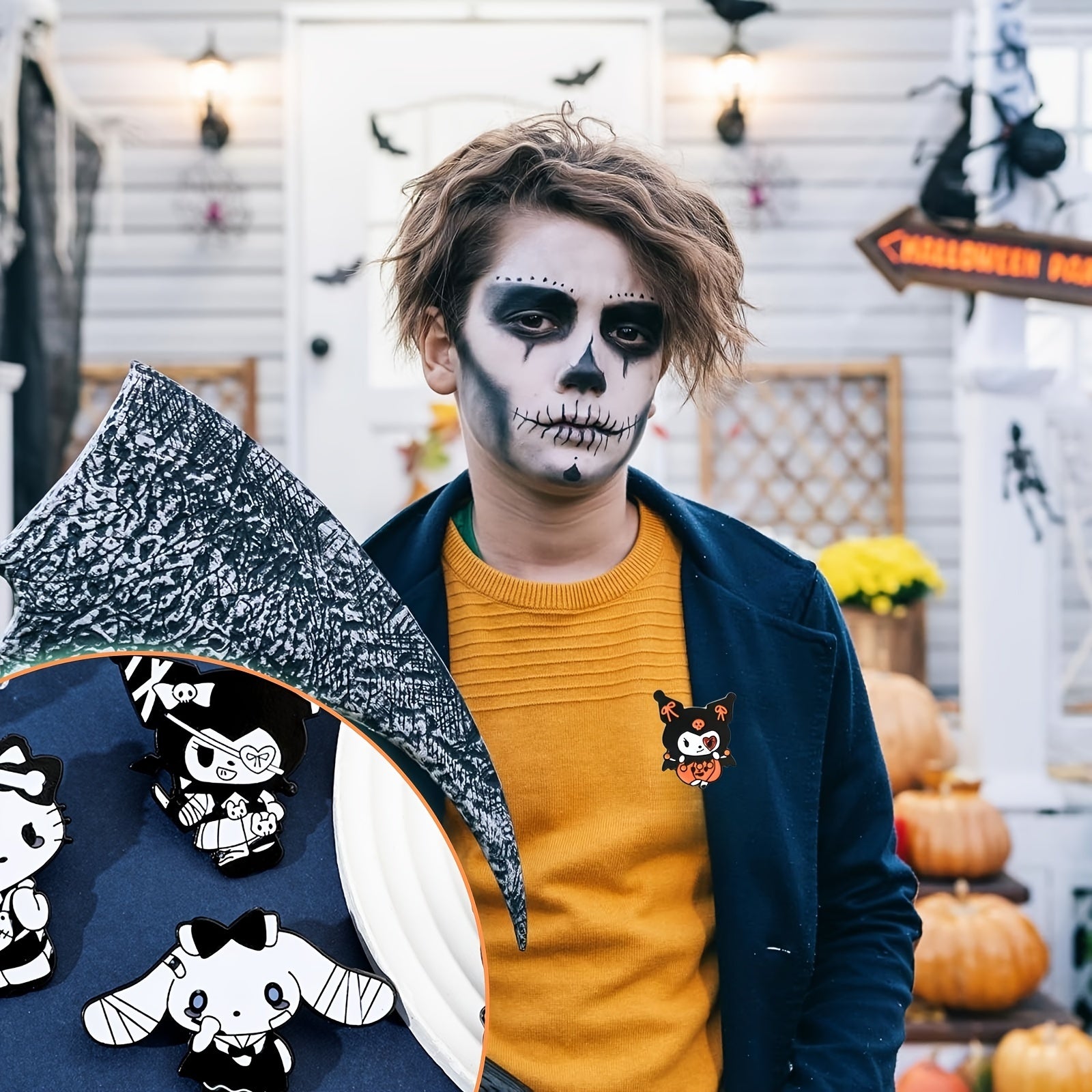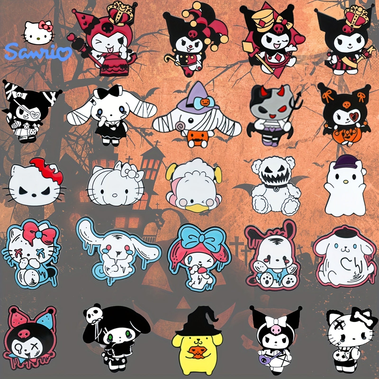 Set of 6 Halloween Enamel Pins with Cartoon Characters Hello Kitty My Melody Kuromi Witch Ghost Nurse Badges for Hats Bags Jackets