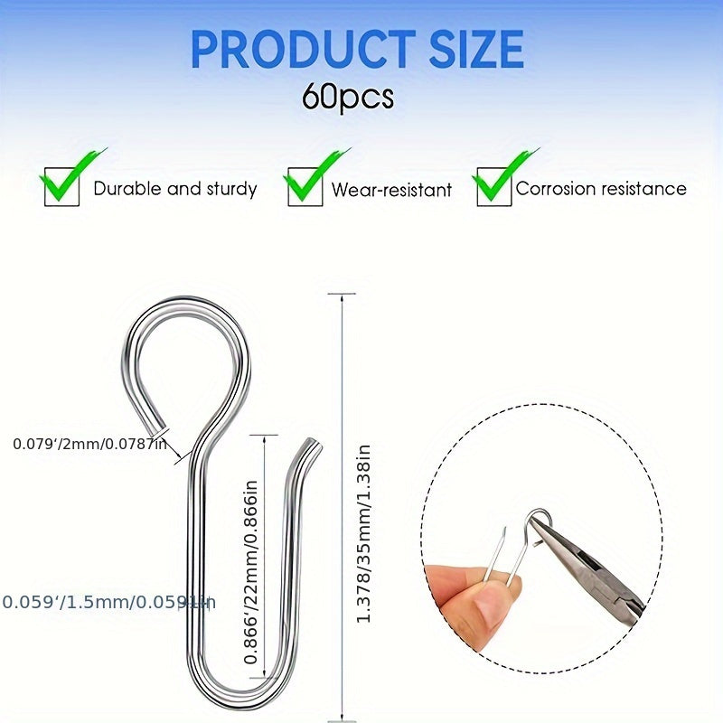 Set of 60 Curtain Hooks S Hooks for Drapery Hanging Window Accessories