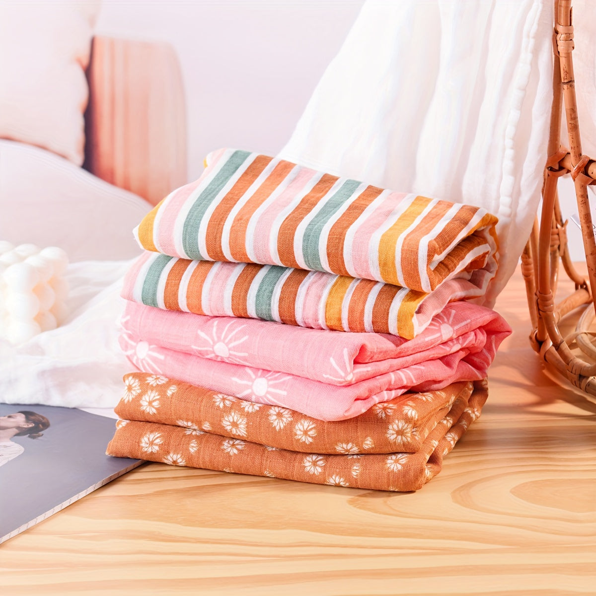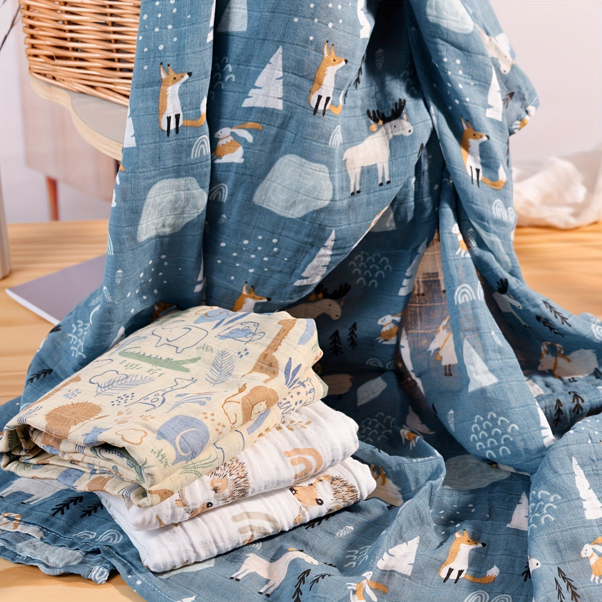 Set of Three Muslin Baby Swaddle Blankets 0-3 Years Cotton Breathable Reusable